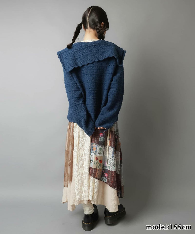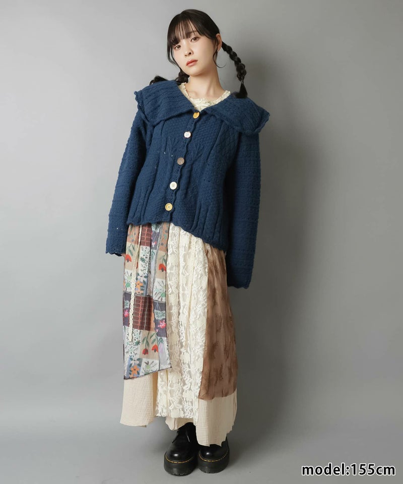 【レトロな雰囲気が可愛い♡異素材ドッキングロングスカート】
