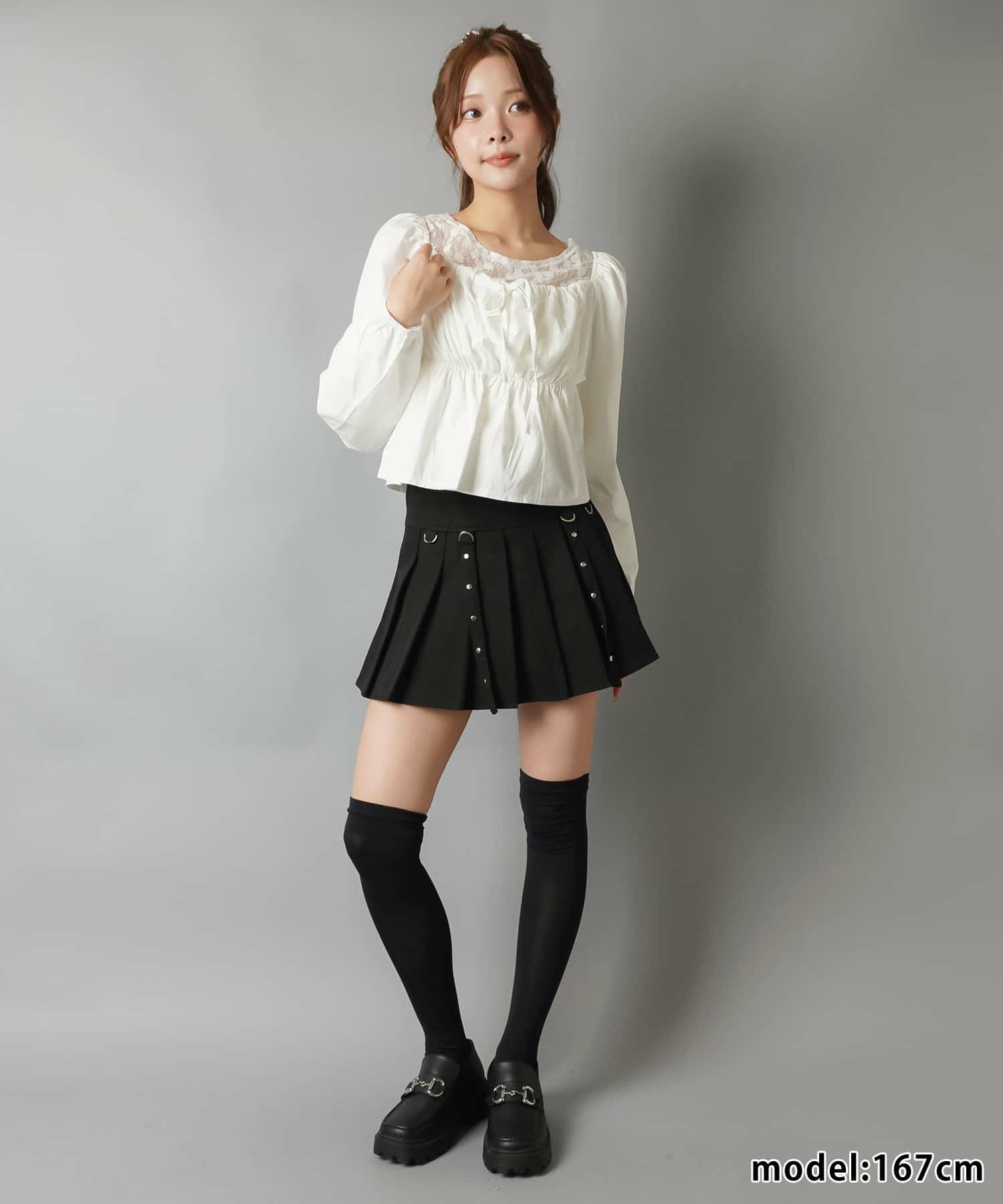 2:スタッズ付きのプリーツスカート