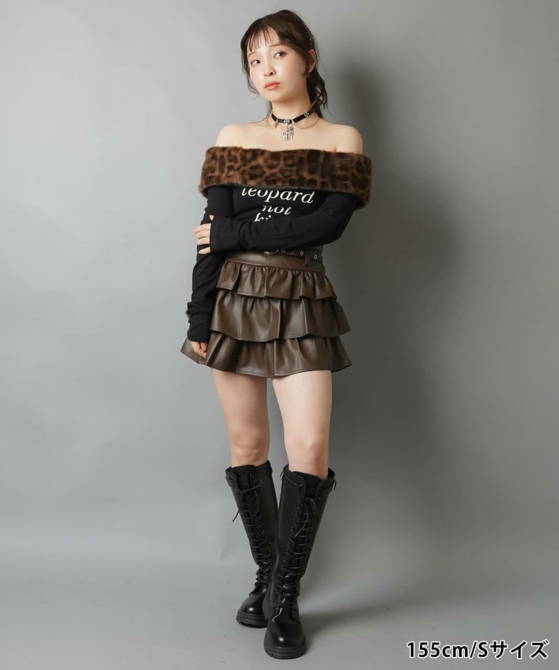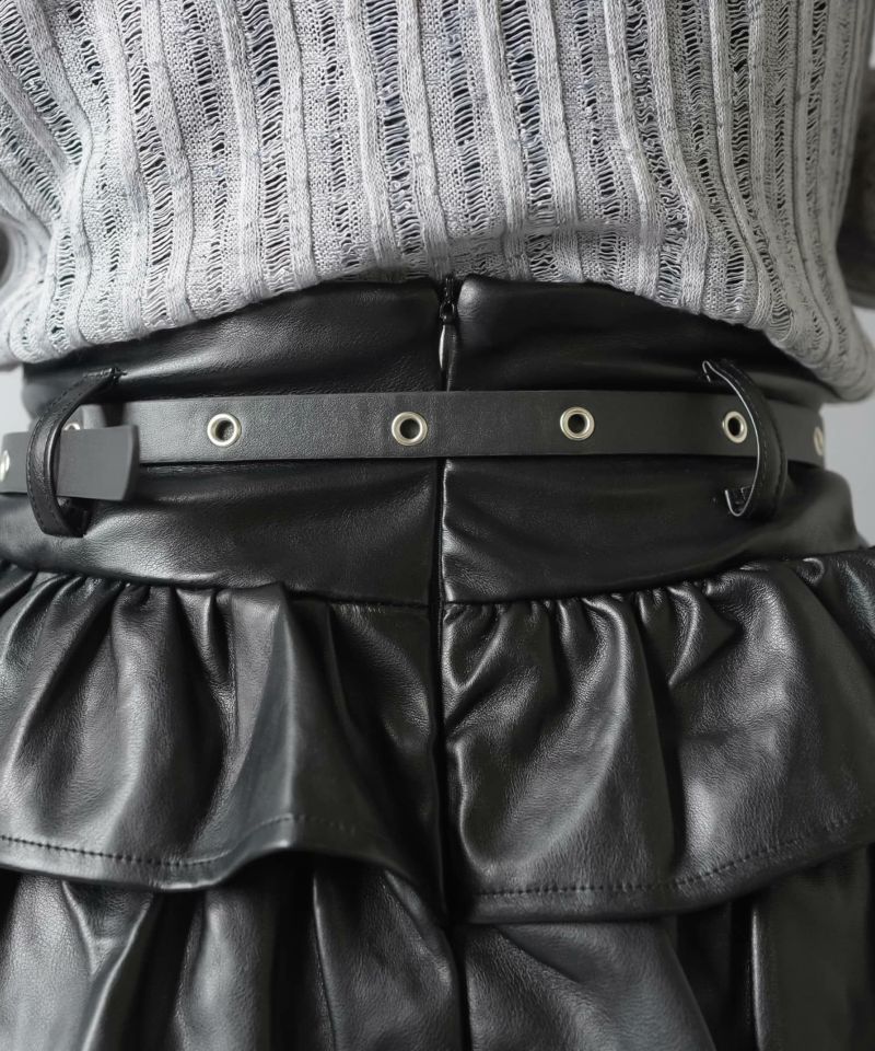 2サイズ展開/合皮フリルティアードミニスカート/ハートベルト付き