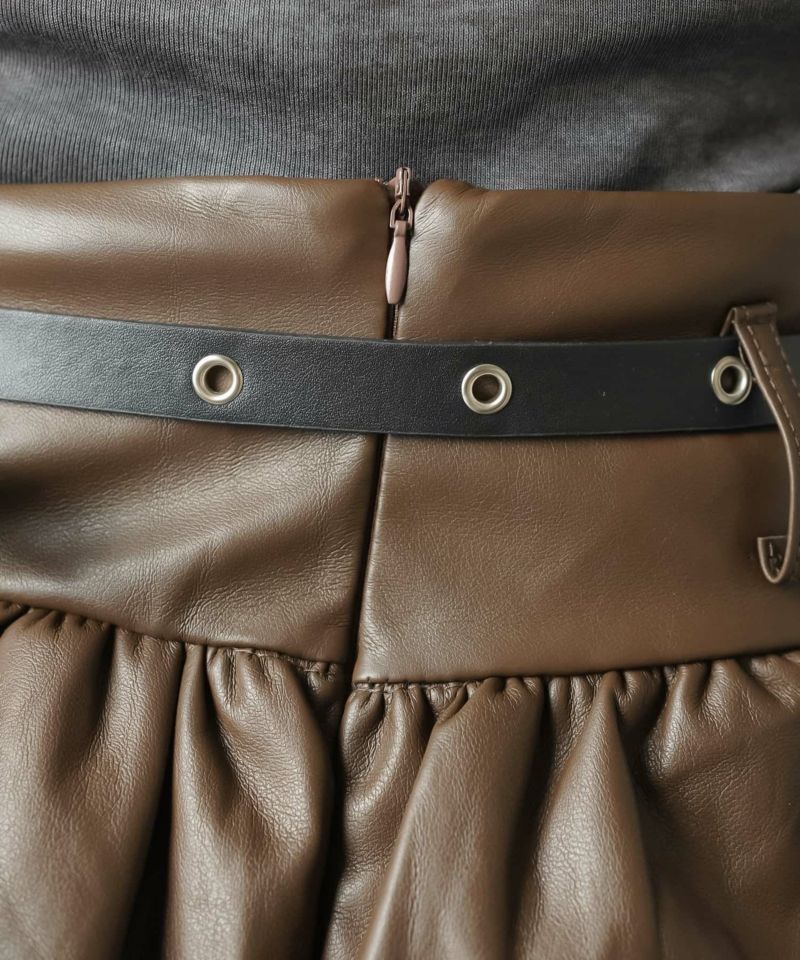 1:ベルト付きのレザーミニスカート