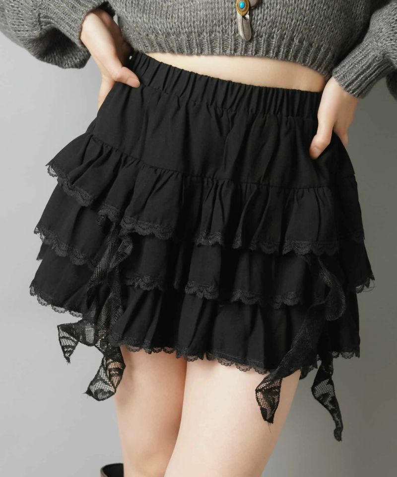 【34%OFF】フリルティアードミニスカート/イレヘム/インナーパンツ付き