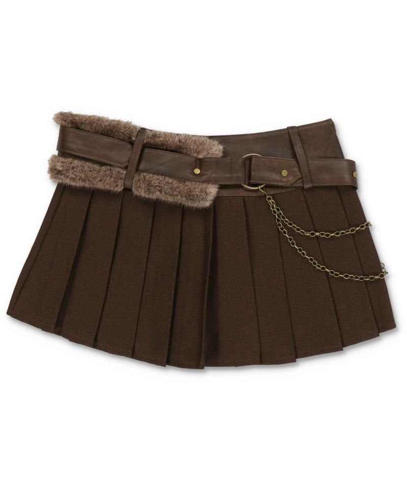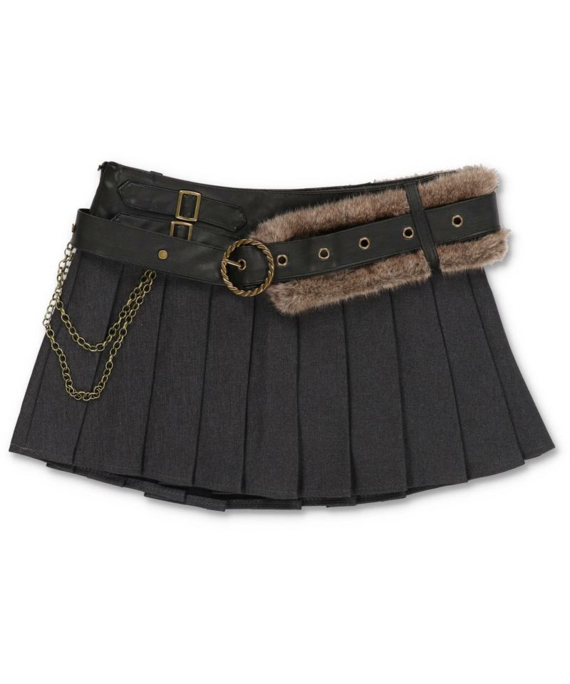 プリーツミニスカート/フェイクファーベルト付き/インナーパンツ付き/#平成ギャル