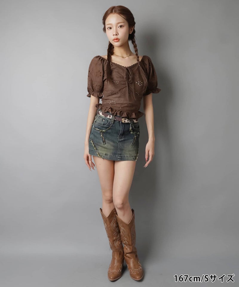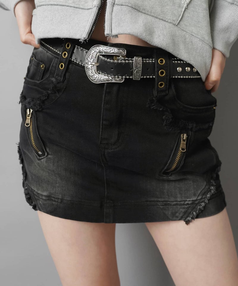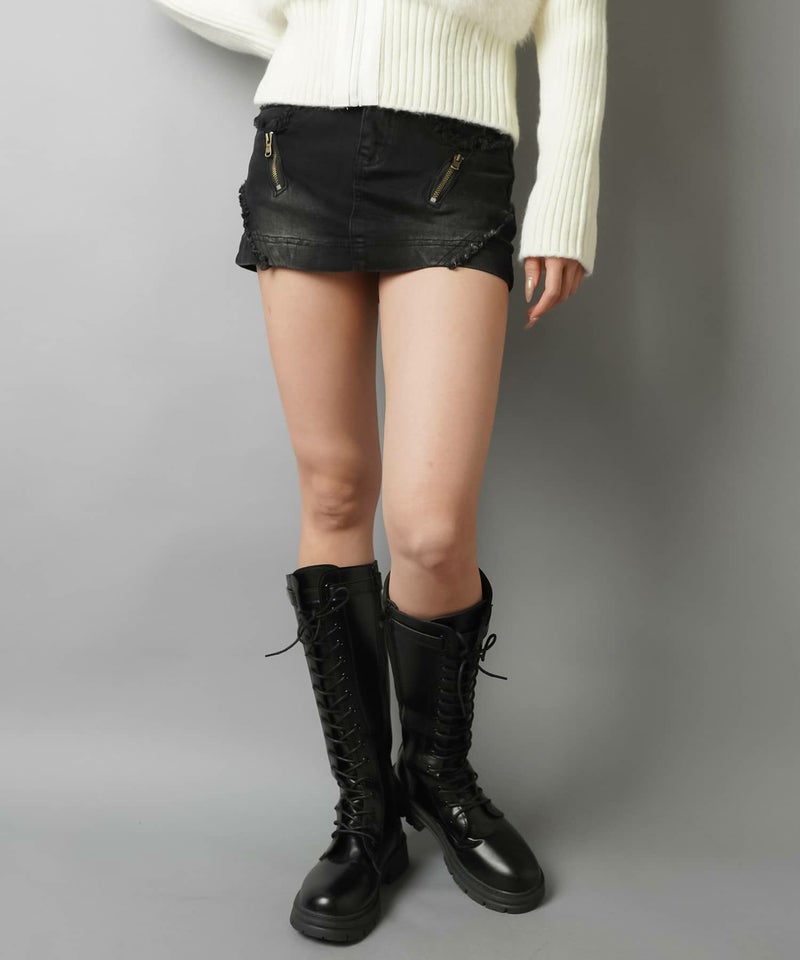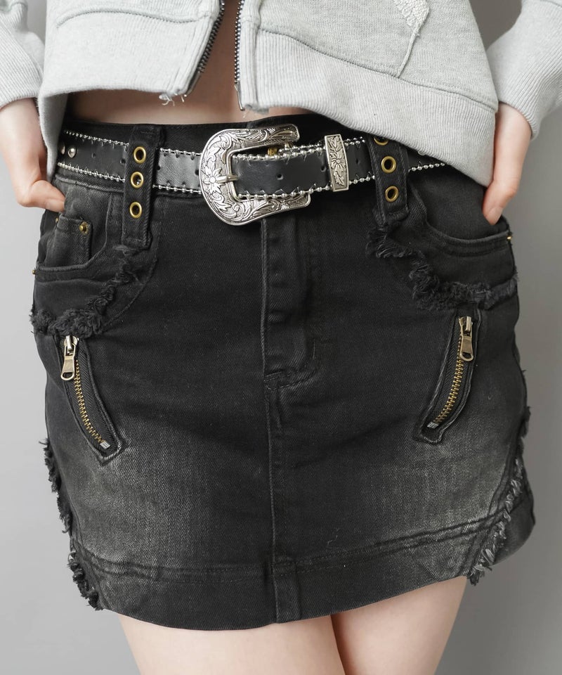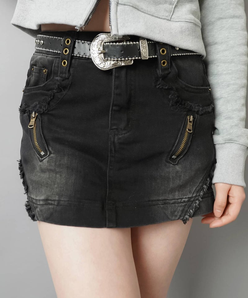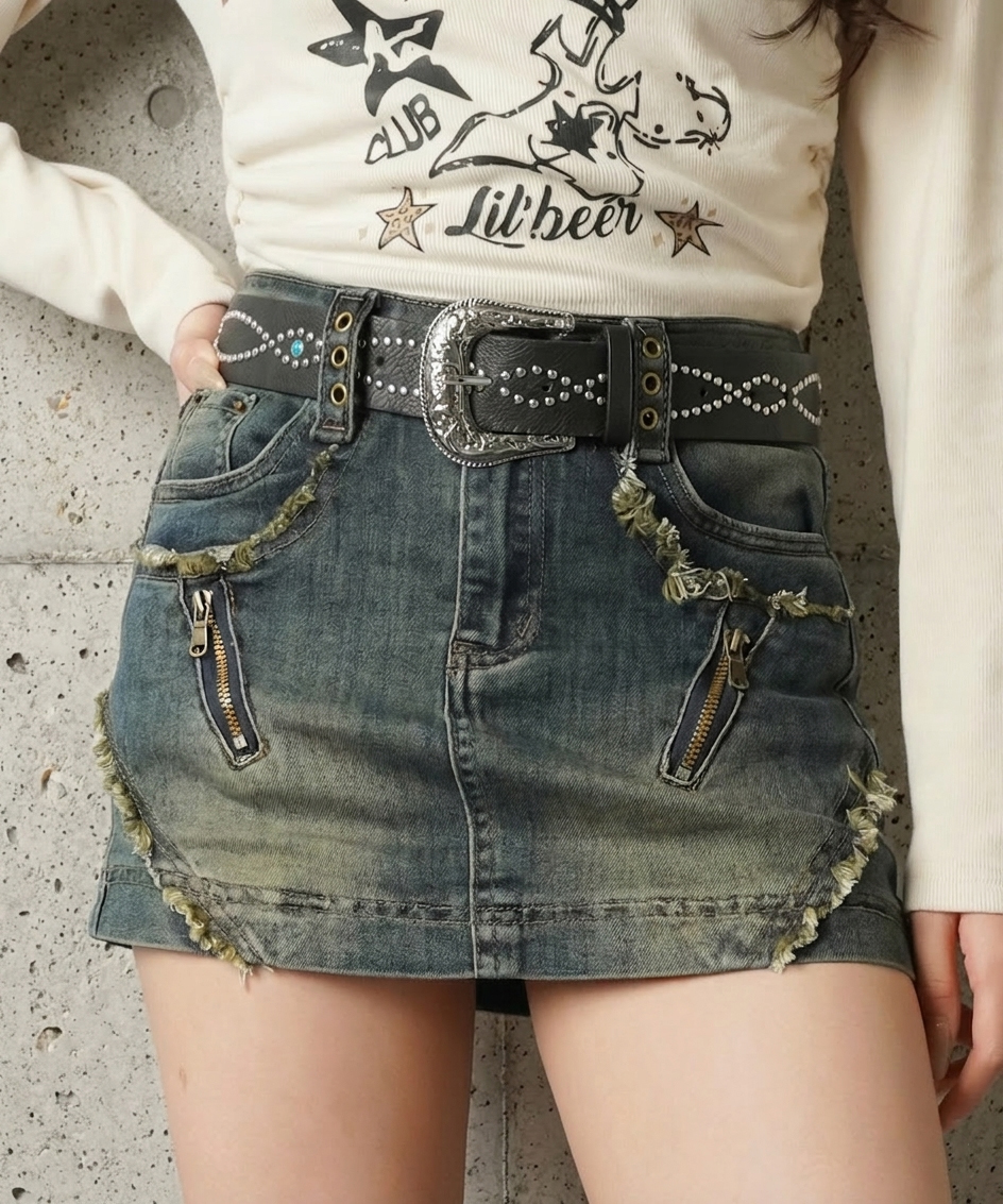 【ギャルムード全開♡フリンジ×ジップの最強デニムミニスカート】