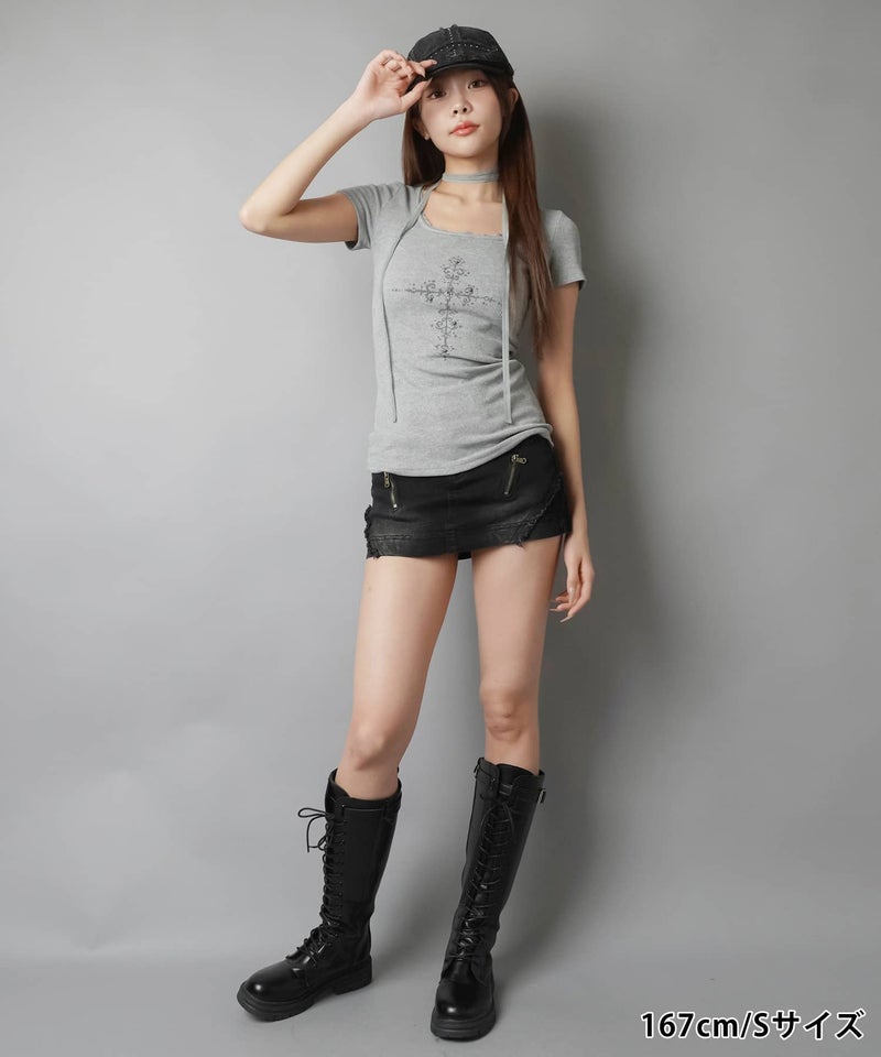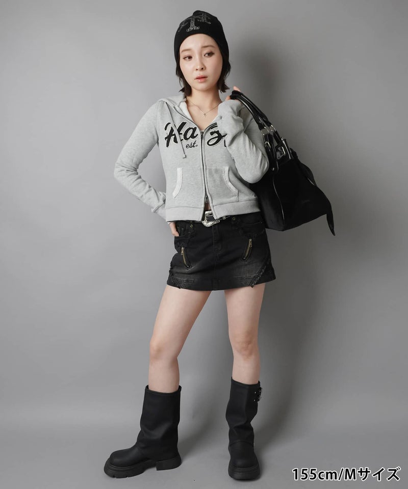 1:フリンジデザインとジップがグランジギャルコーデにピッタリ