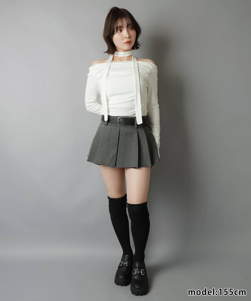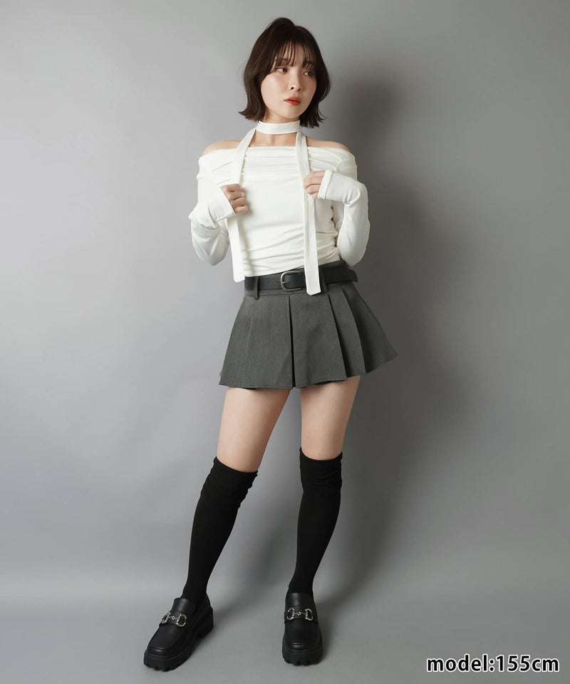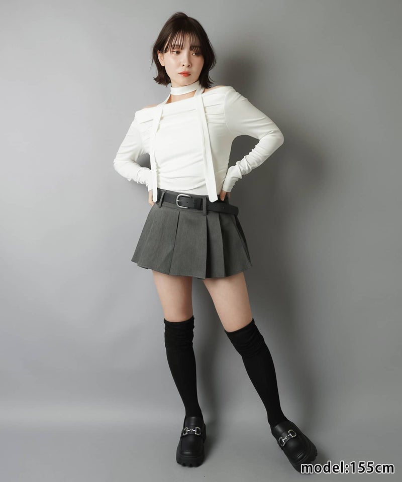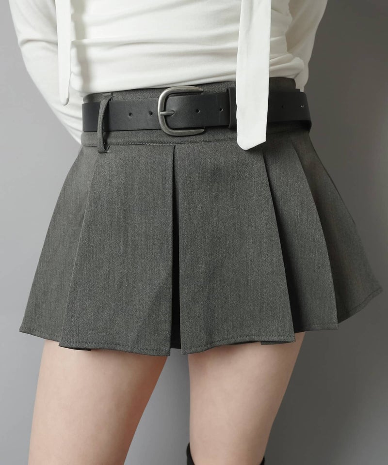 プリーツミニスカート/ベルト付き