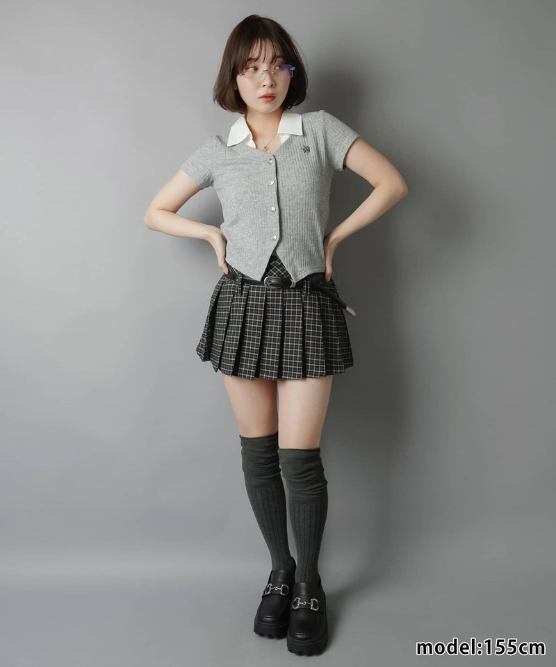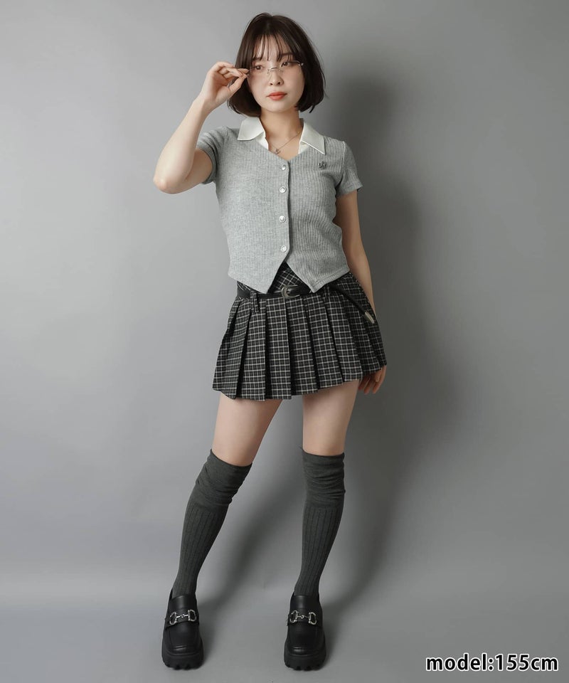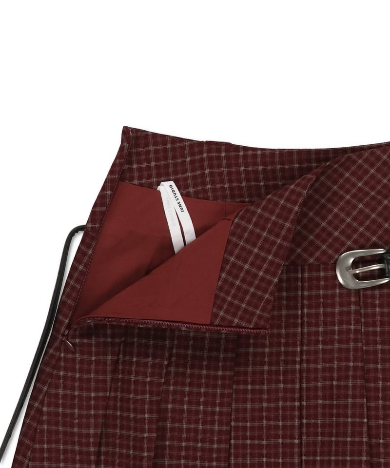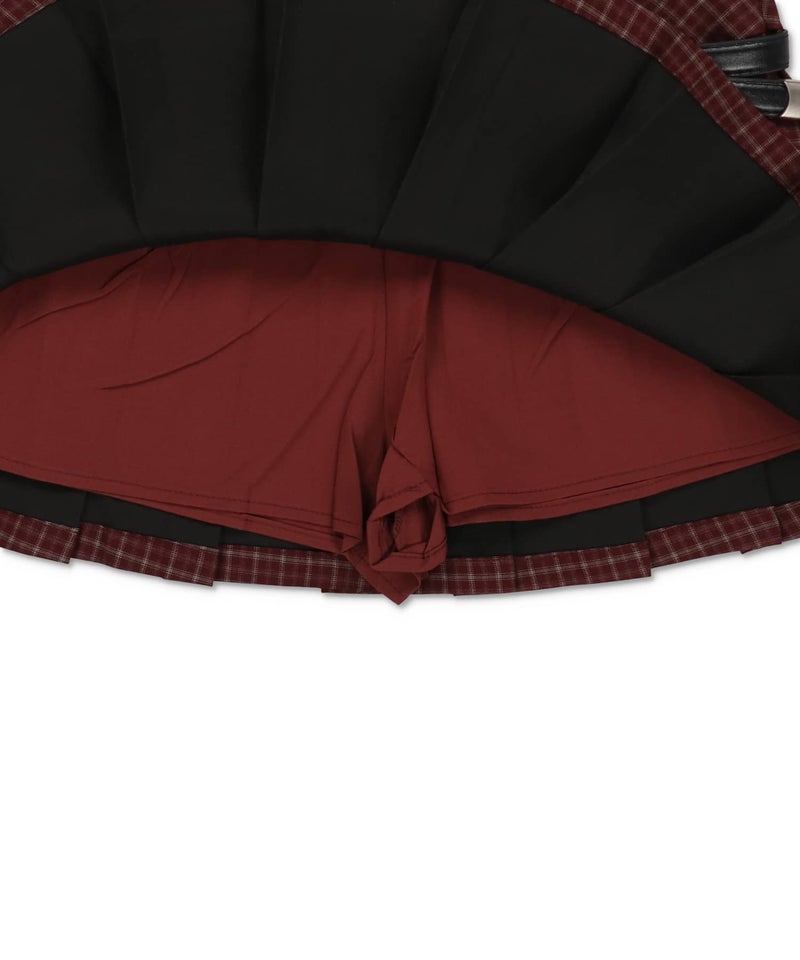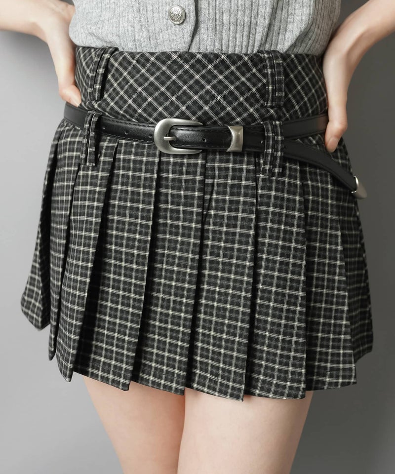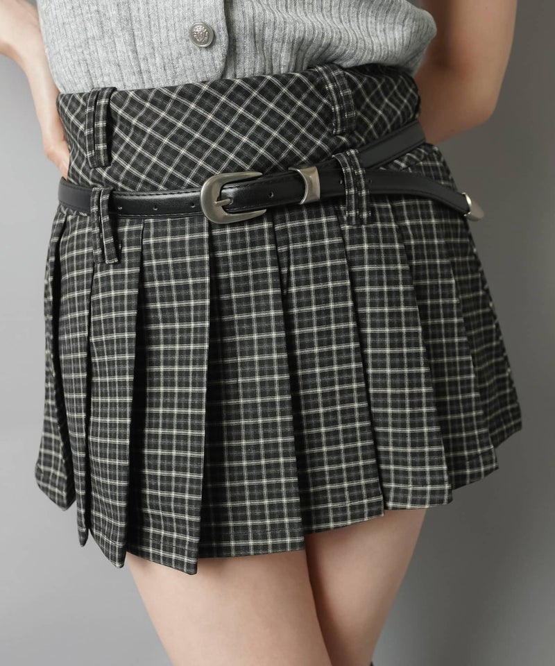 チェック柄プリーツミニスカート/ベルト付き