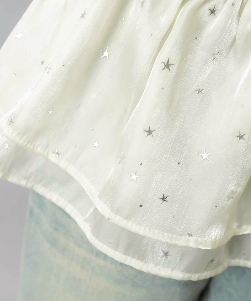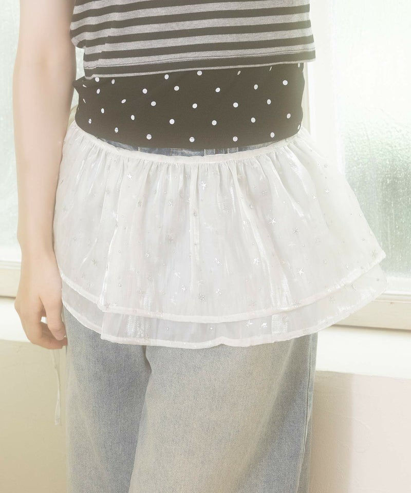 今のトレンドは腰巻きレイヤード! 【95%OFF】オーガンジー巻きスカート/スター/ラップスカート/腰巻き/#ウィッシュコア