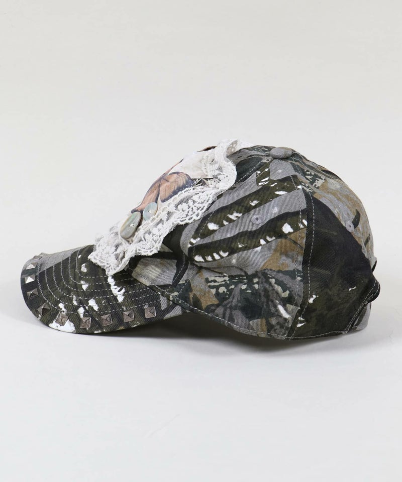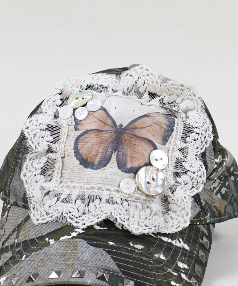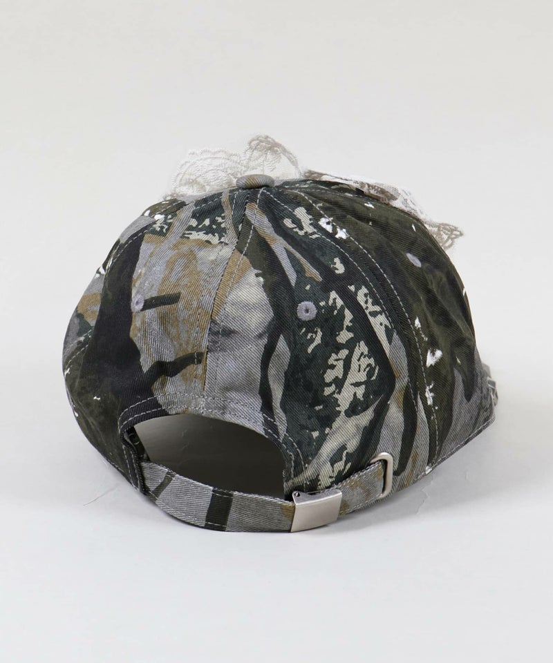 【34%OFF】カモ柄コットンキャップ/迷彩/レースボタン/バタフライ
