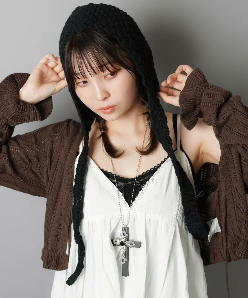 【61%OFF】コットンニットキャップ/紐フリル/#NEO森ガール