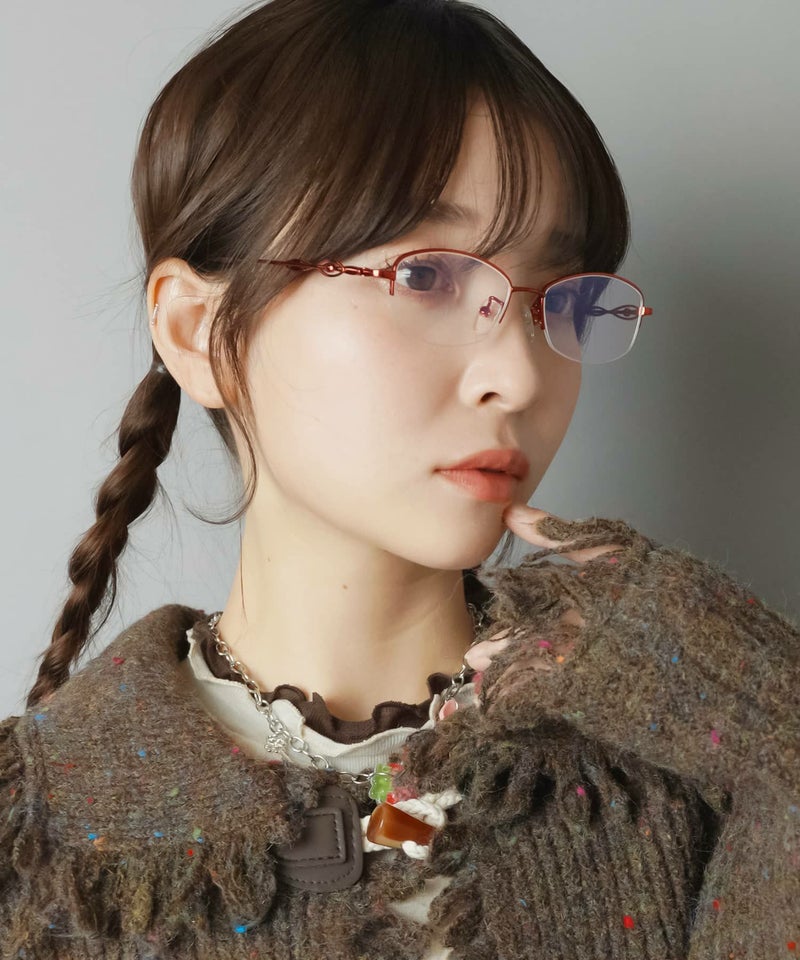 ハーフリム伊達メガネ/スクエアカラーフレーム3