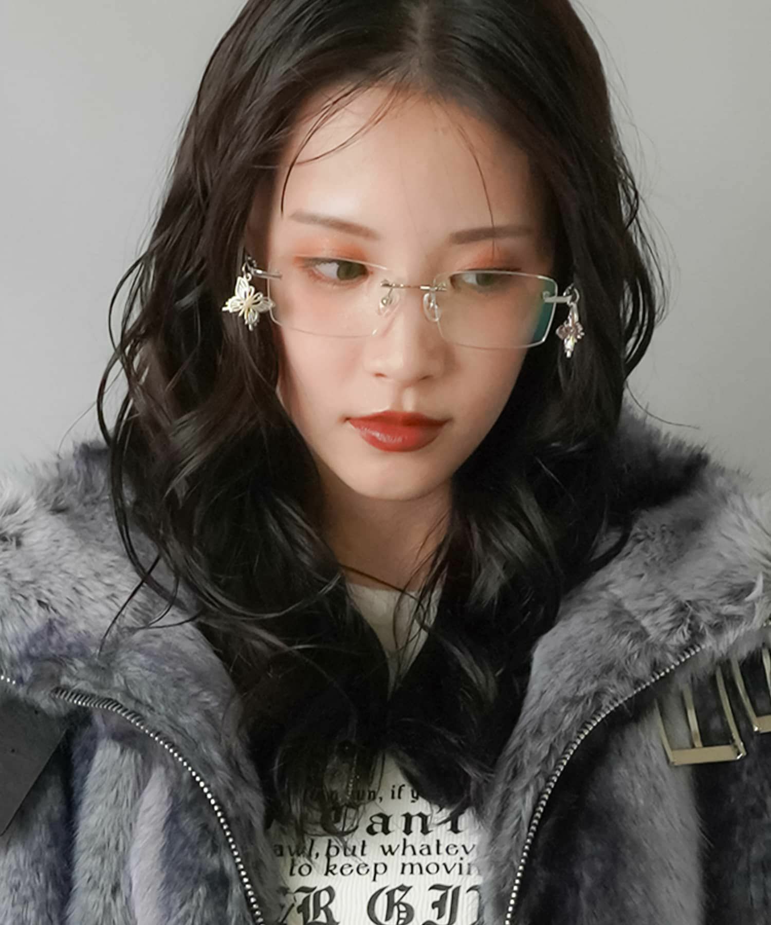 黒縁や縁なしメガネがポイントアイテムになり、