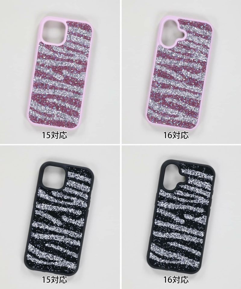 iPhone15/16対応 ラインストーンスマホケース/ゼブラ<メール便対応>