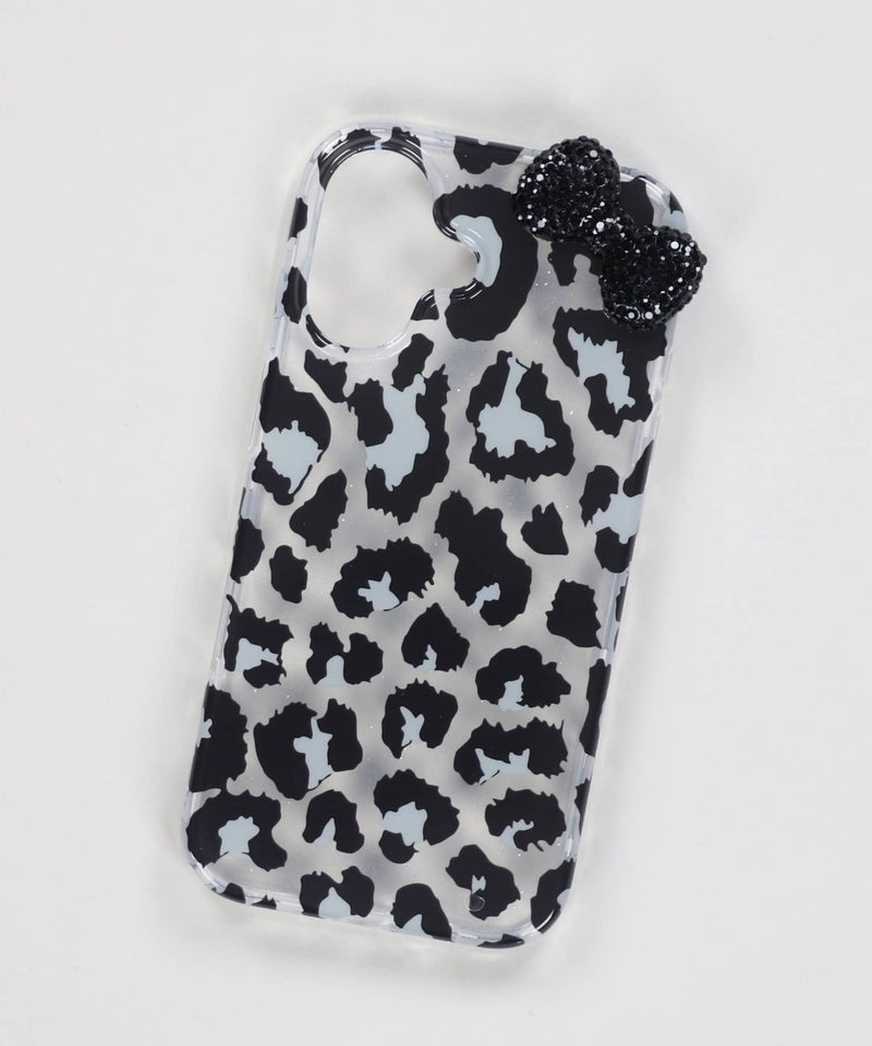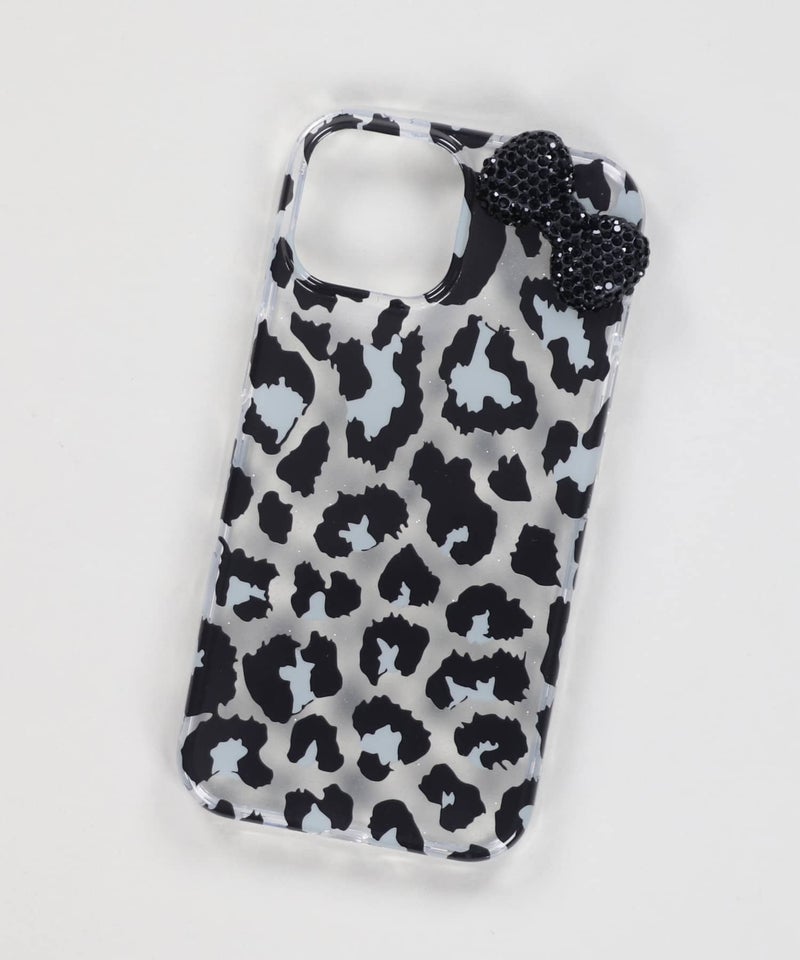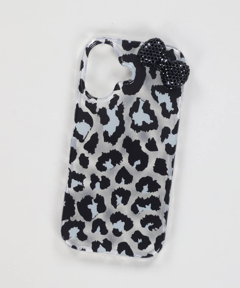 iPhone15/16/17対応 クリアスマホケース/ヒョウ柄リボン<メール便対応>