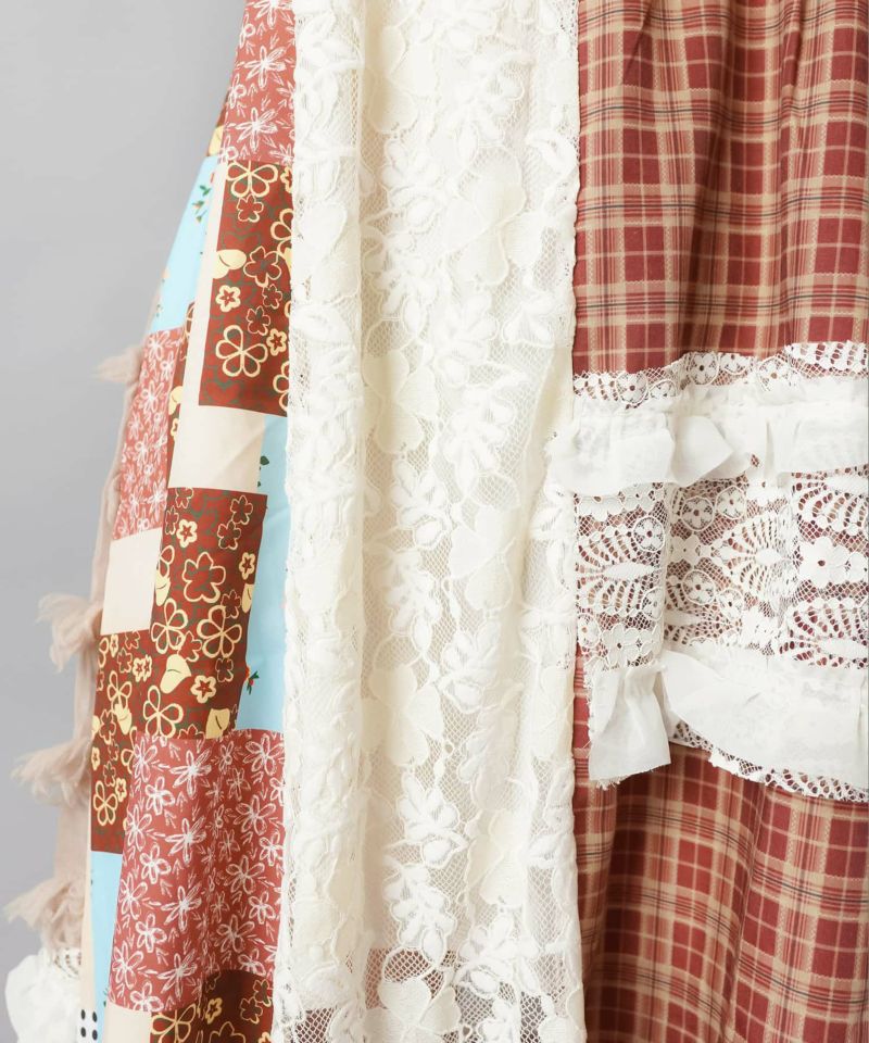 【レトロな雰囲気が可愛い!パッチワークロングキャミワンピ】