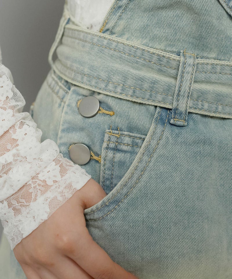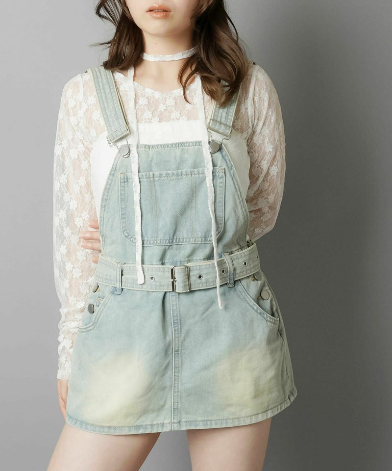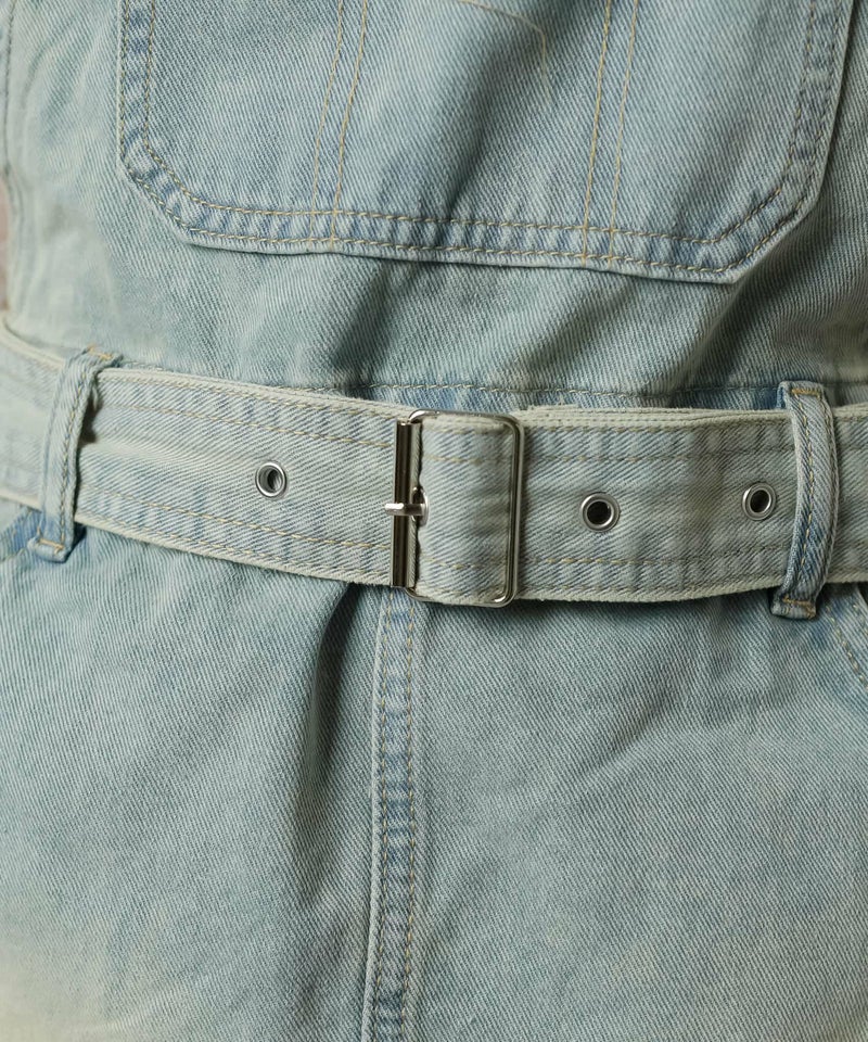 【88%OFF】デニムジャンパースカート/ジャンスカ/ウエストベルト