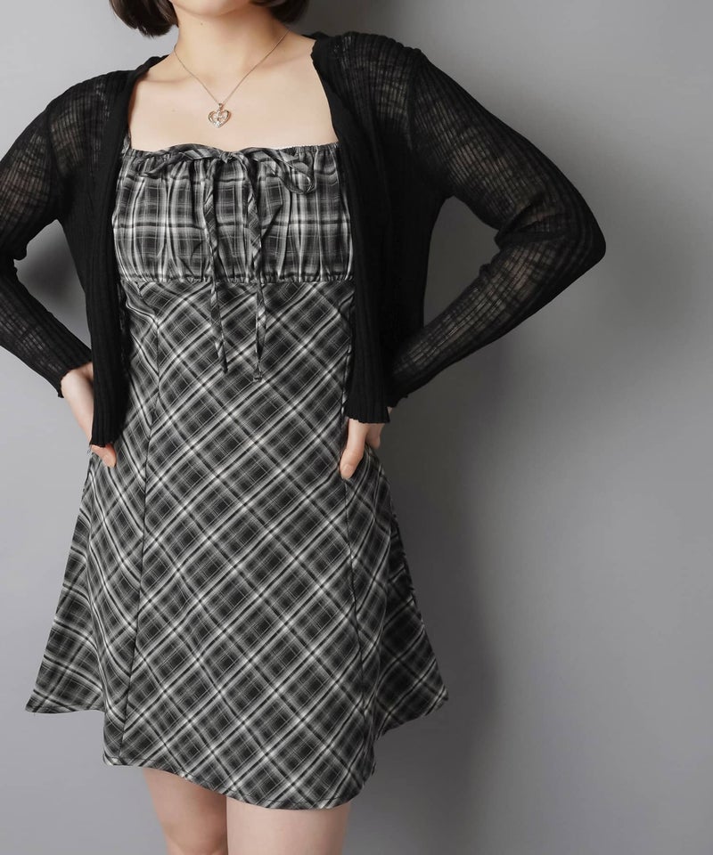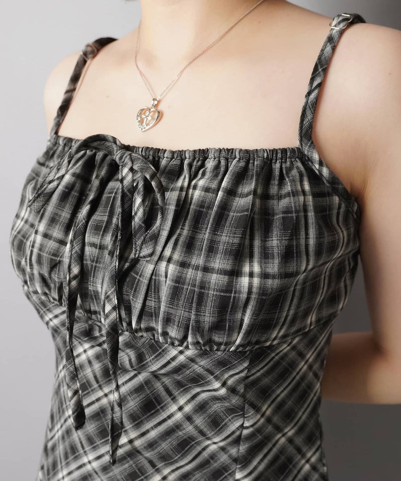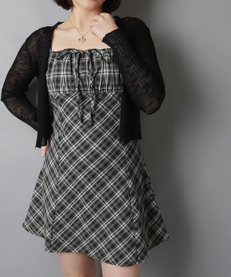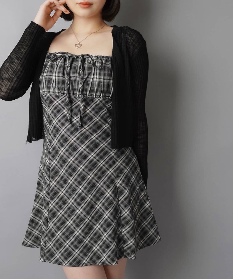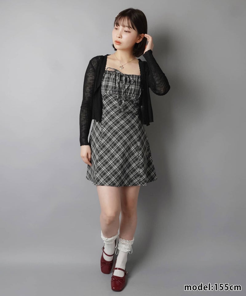 ミニキャミワンピース/チェックリボン
