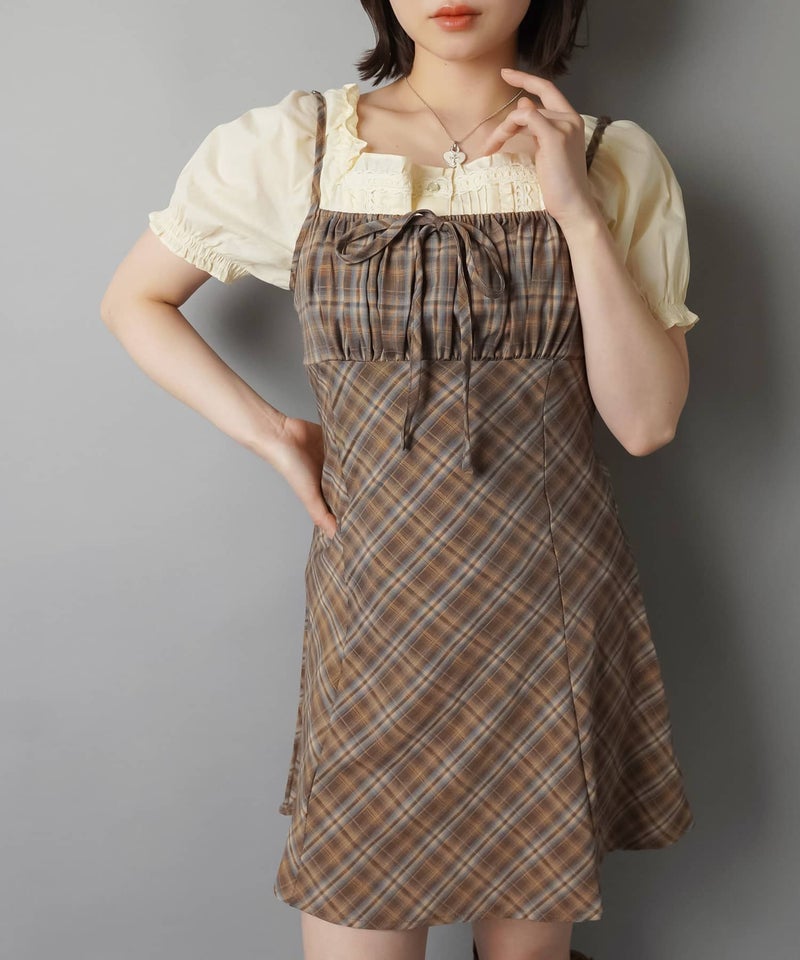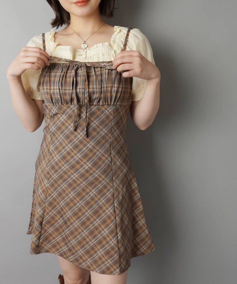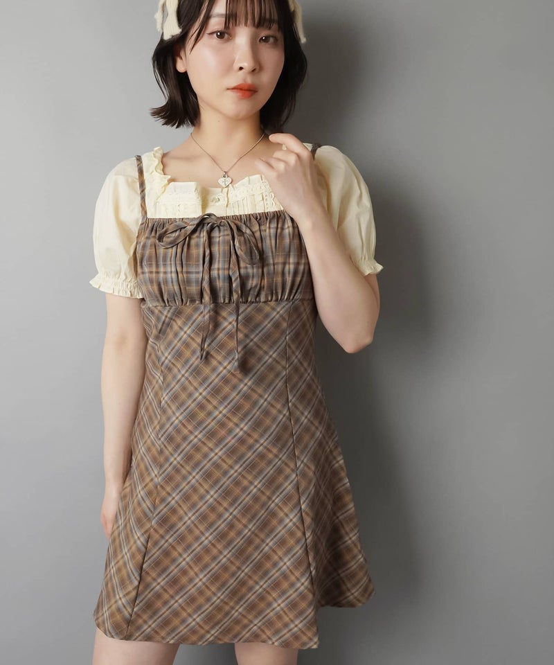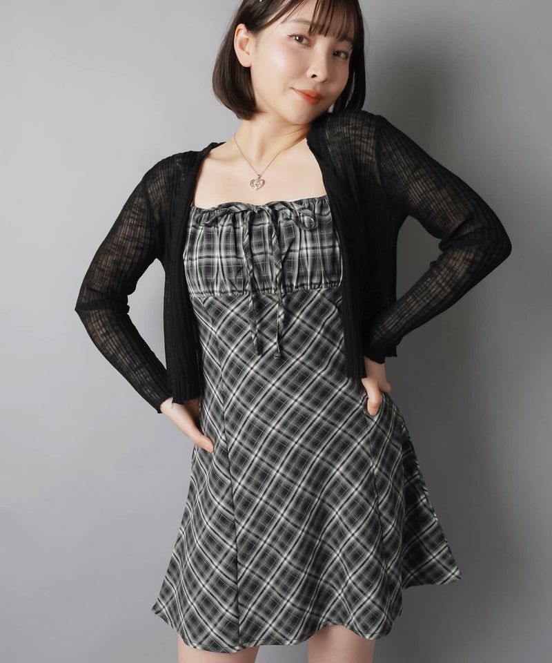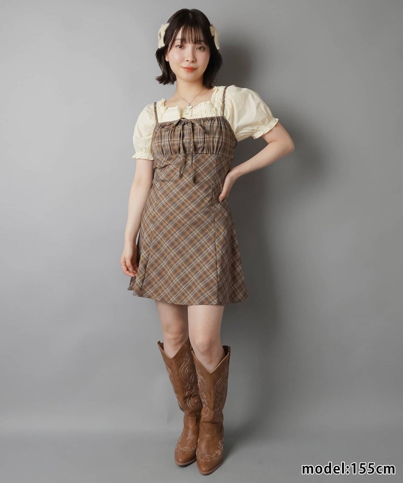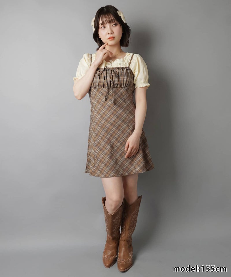 ミニキャミワンピース/チェックリボン
