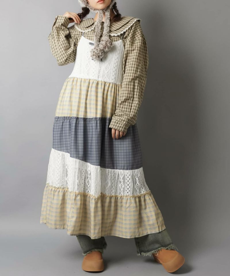 2:レースやチェックがアソートに組み合わさっていて一枚で主役級のキャミワンピ