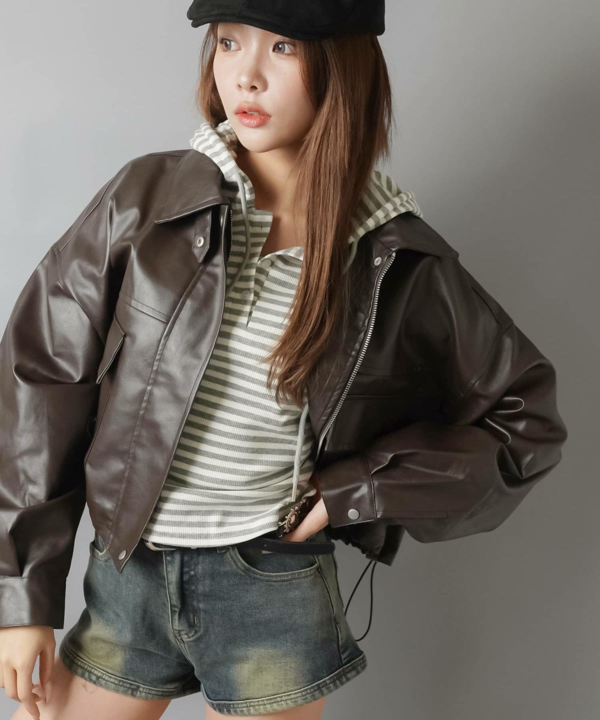 他の画像を見る 裾のドローコードでシルエットを変えられる! ショート丈合皮ジャケット ¥ 5,489 税込 会員特別価格 ¥ 4,489 税込 公式通販限定!レディースアウター¥1,000オフ カートに入れる お気に入りに追加