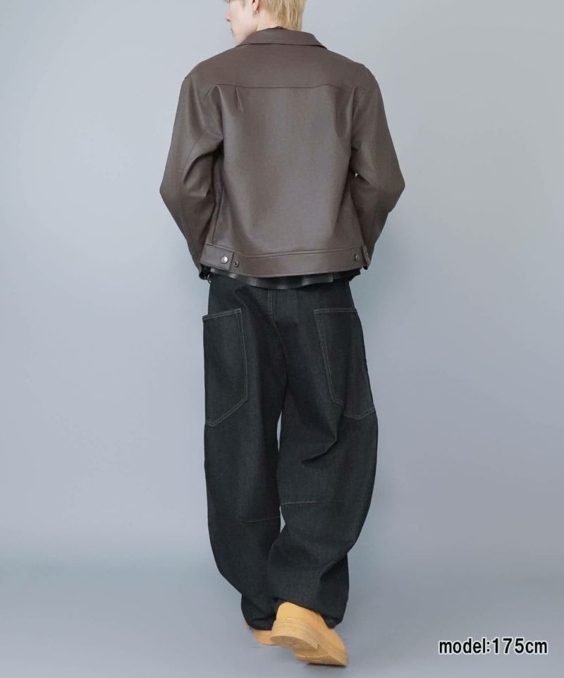 ショート丈のフェイクレザージャケット。