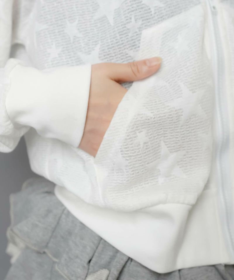 【41%OFF】猫耳薄手ジップパーカー/スター/#ウィッシュコア