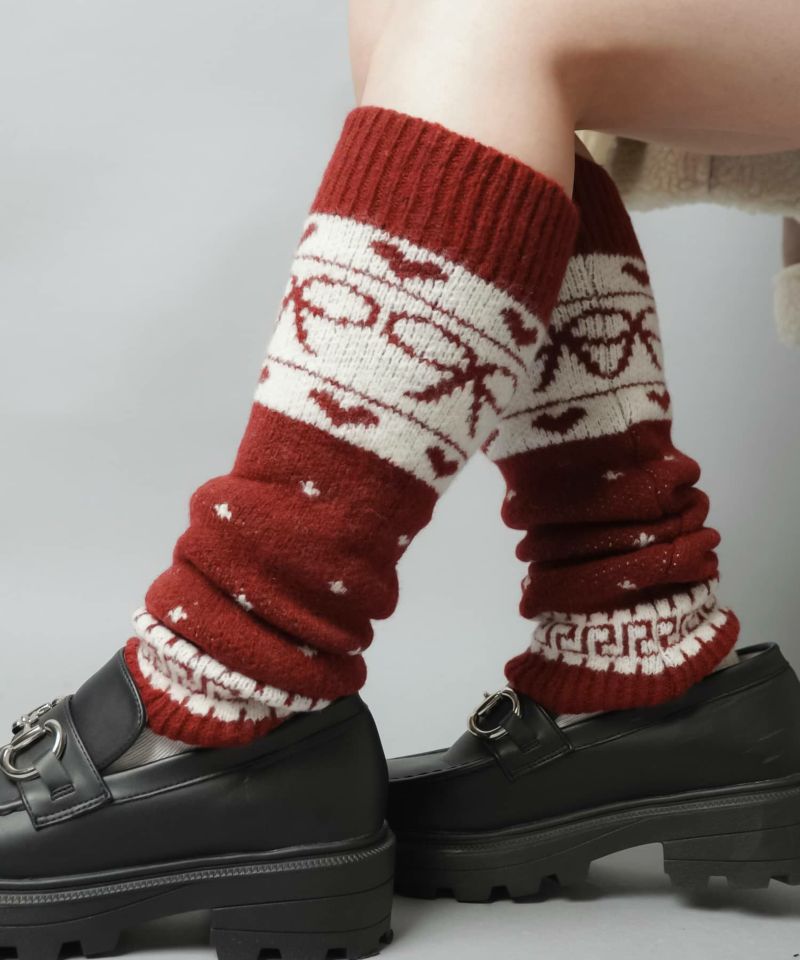 【67%OFF】ノルディック柄レッグカバー/リボン