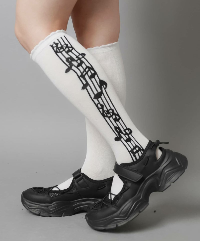 【34%OFF】コットンハイソックス/音符/#ウィッシュコア