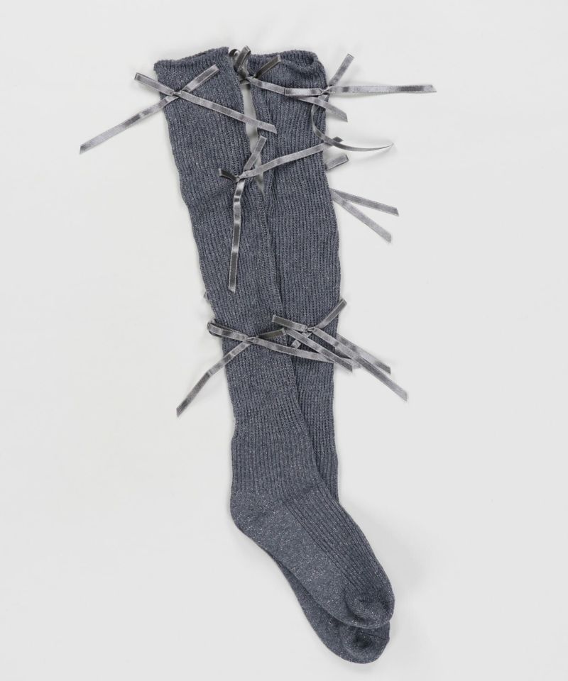 【92%OFF】#バレエコア/ラメリボンハイソックス