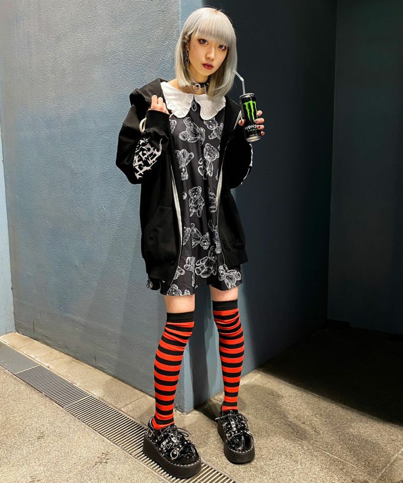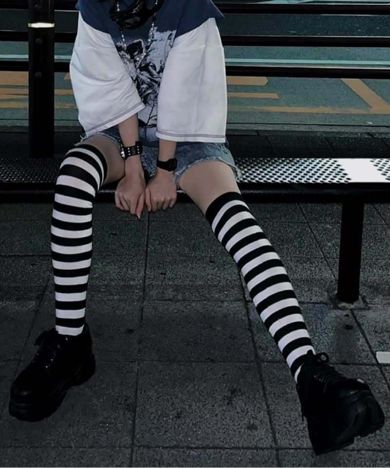 【オシャレのワンポイント小物、ボーダーのハイソックス】