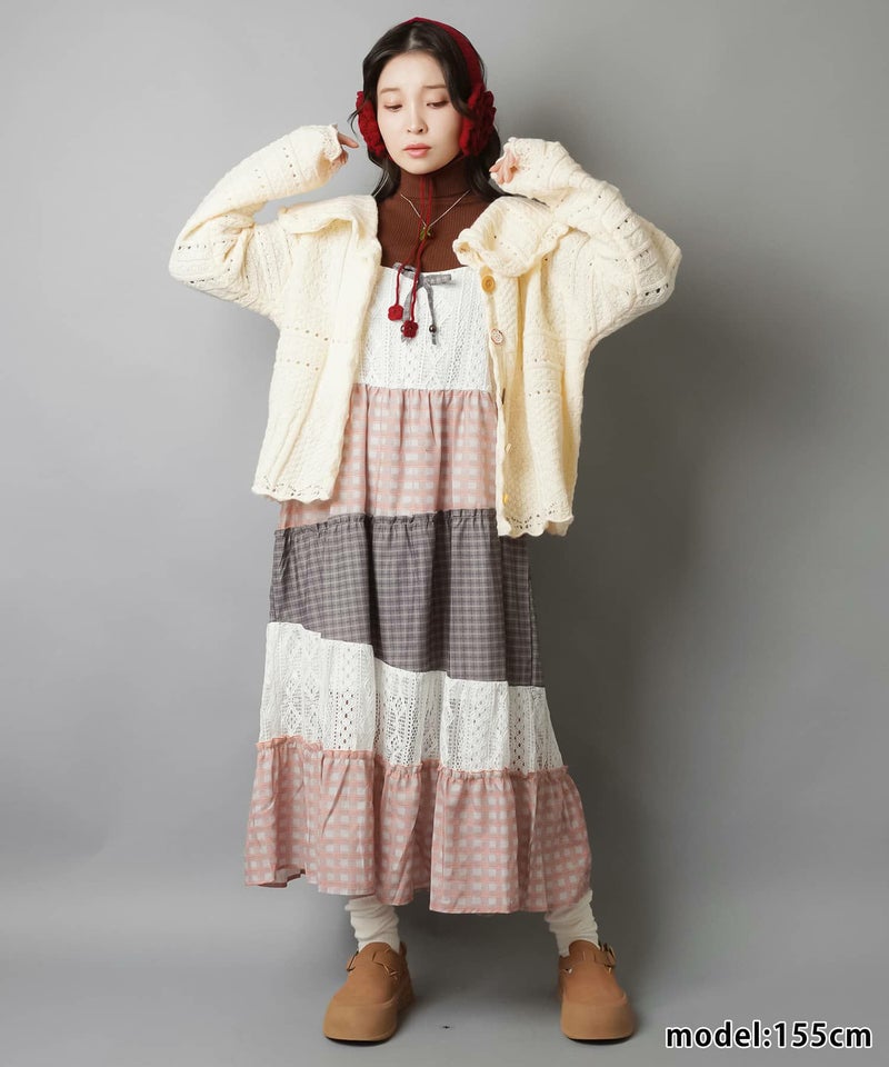 【レイヤード、アースカラー、ダスティカラー、カーディガン、ヘッドアクセ、ナチュラル、レース、ファー】