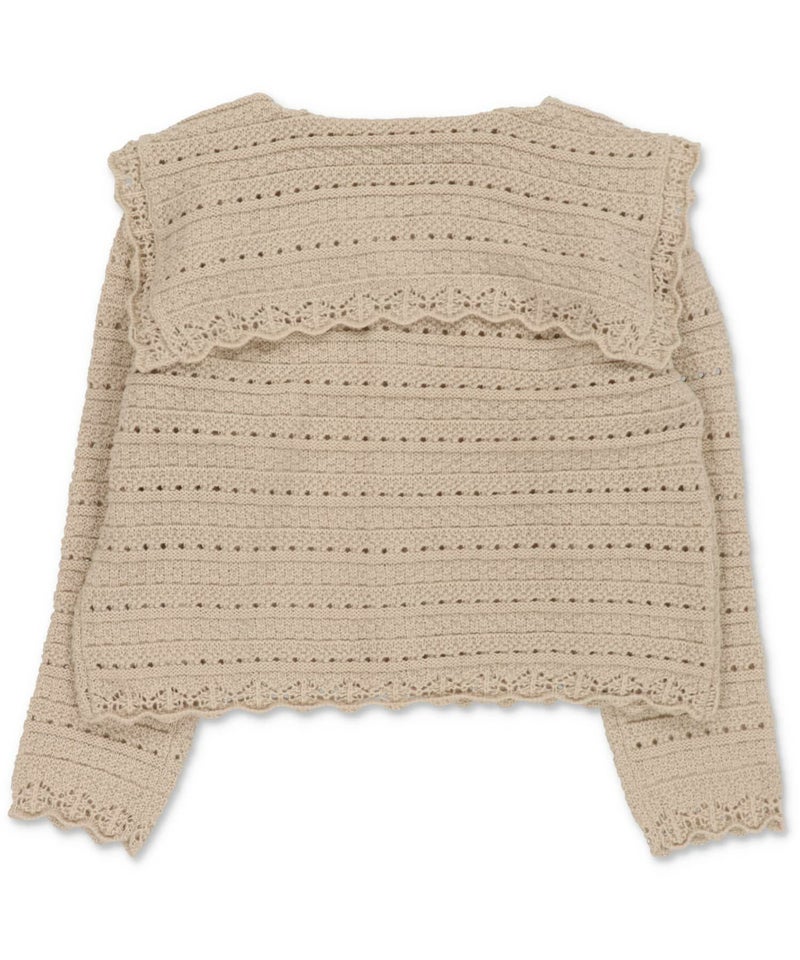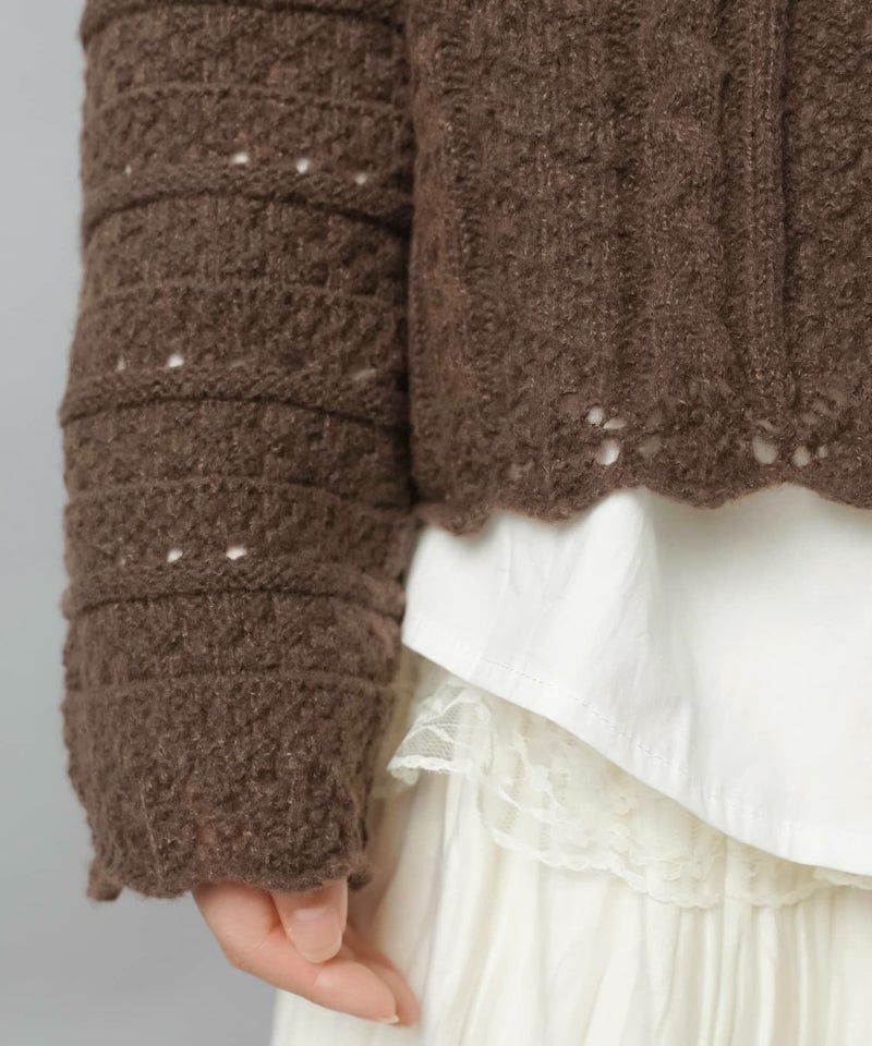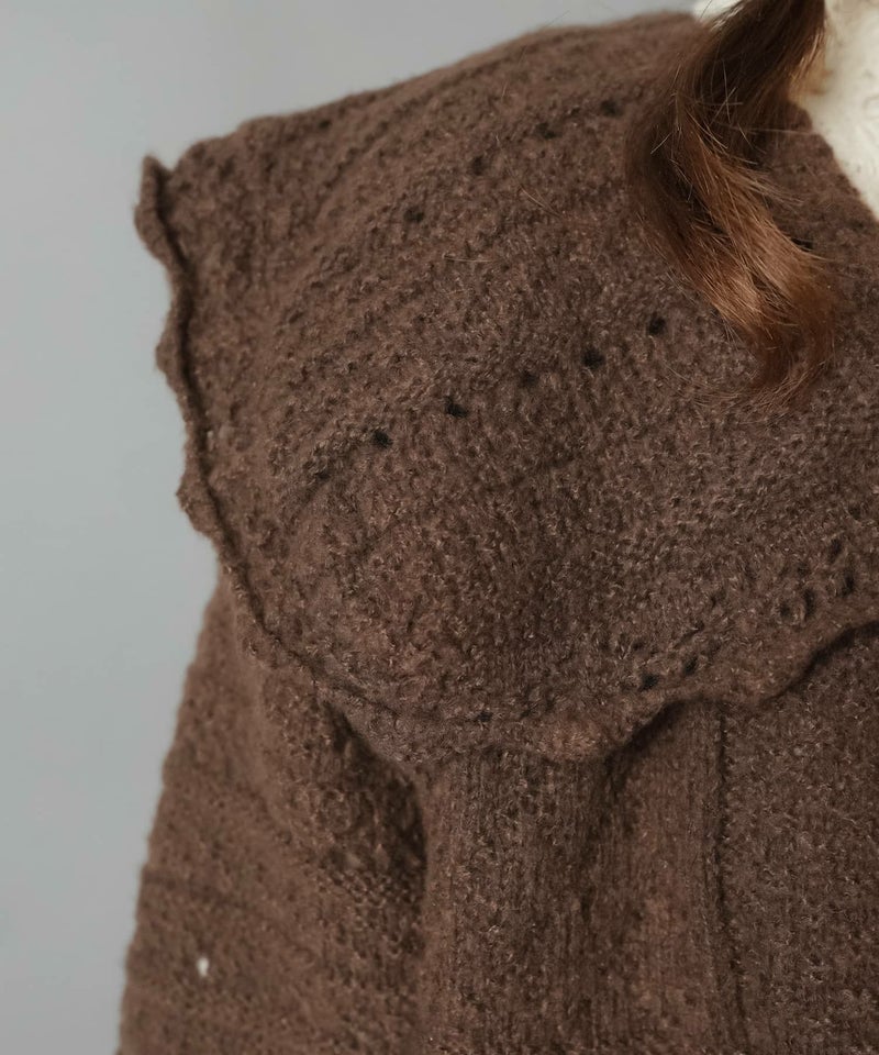 3:いろんな編地でビック襟がポイント