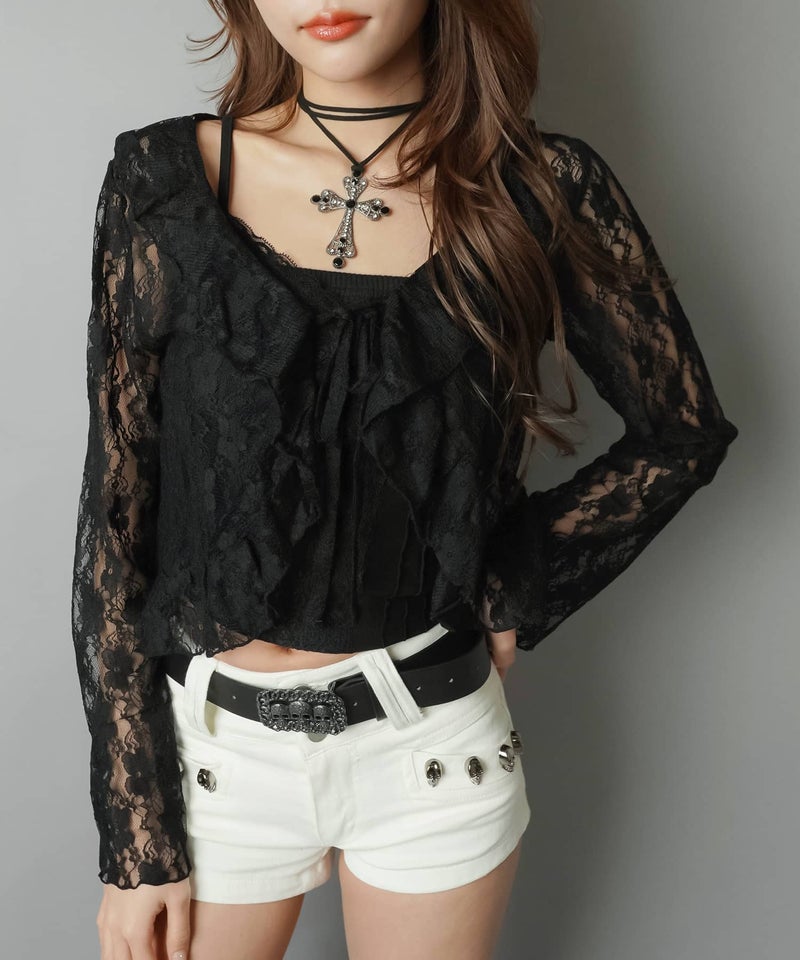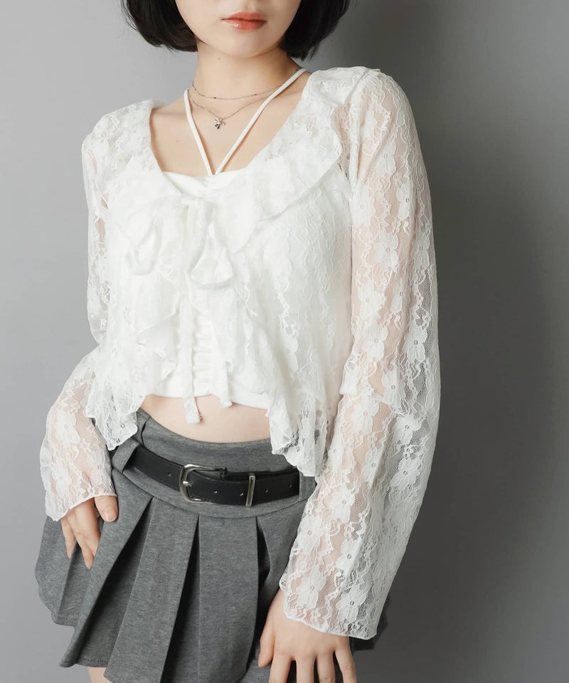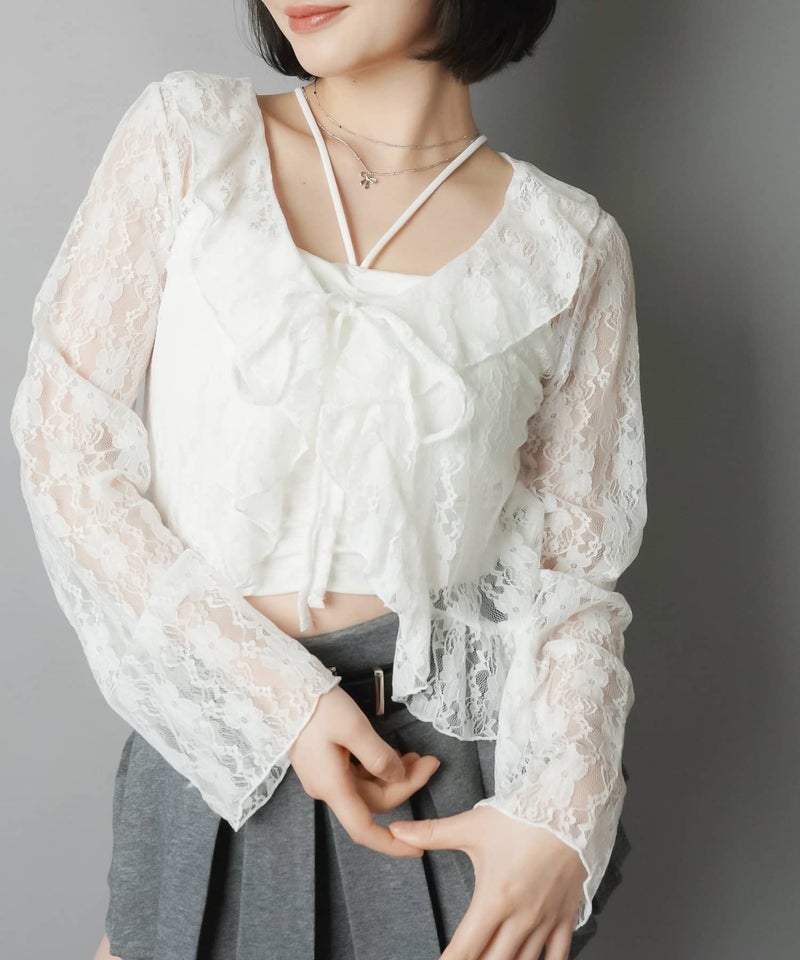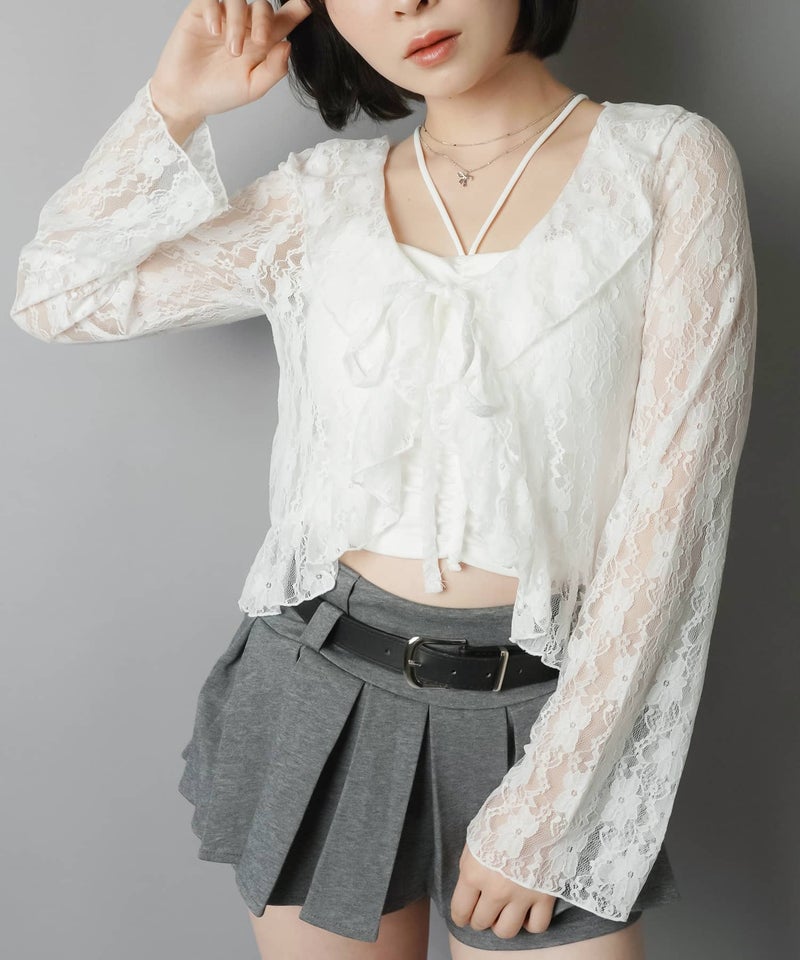 長袖レースカーディガン/ボレロ/リボン