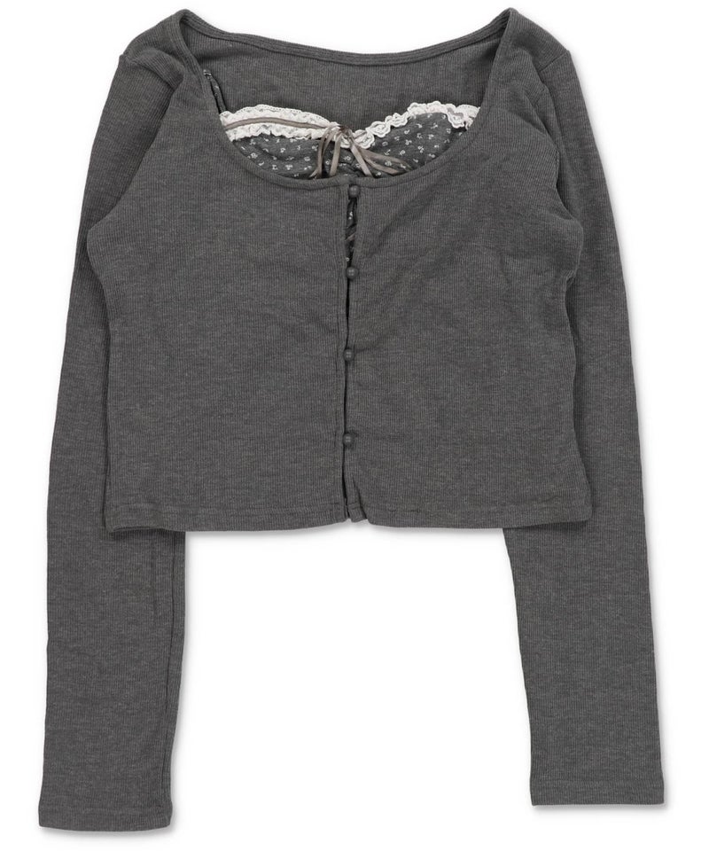 長袖カーディガン+小花柄キャミソールセット/フライス