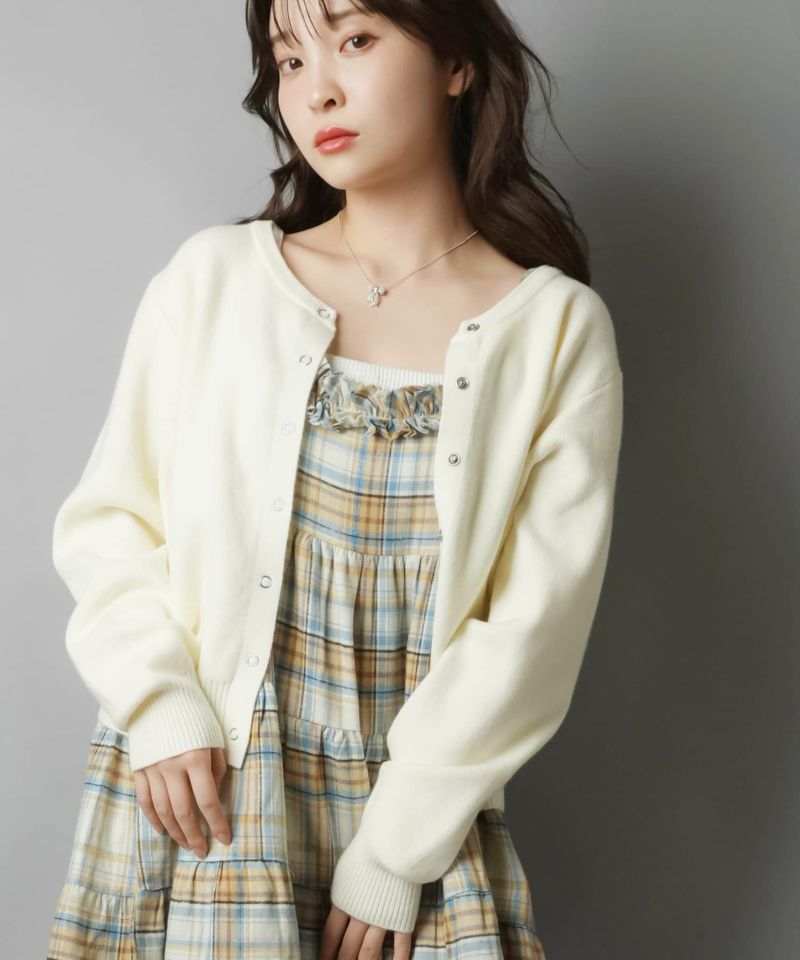 1:シンプルなワンポイント刺繍のスナップボタンカーディガン