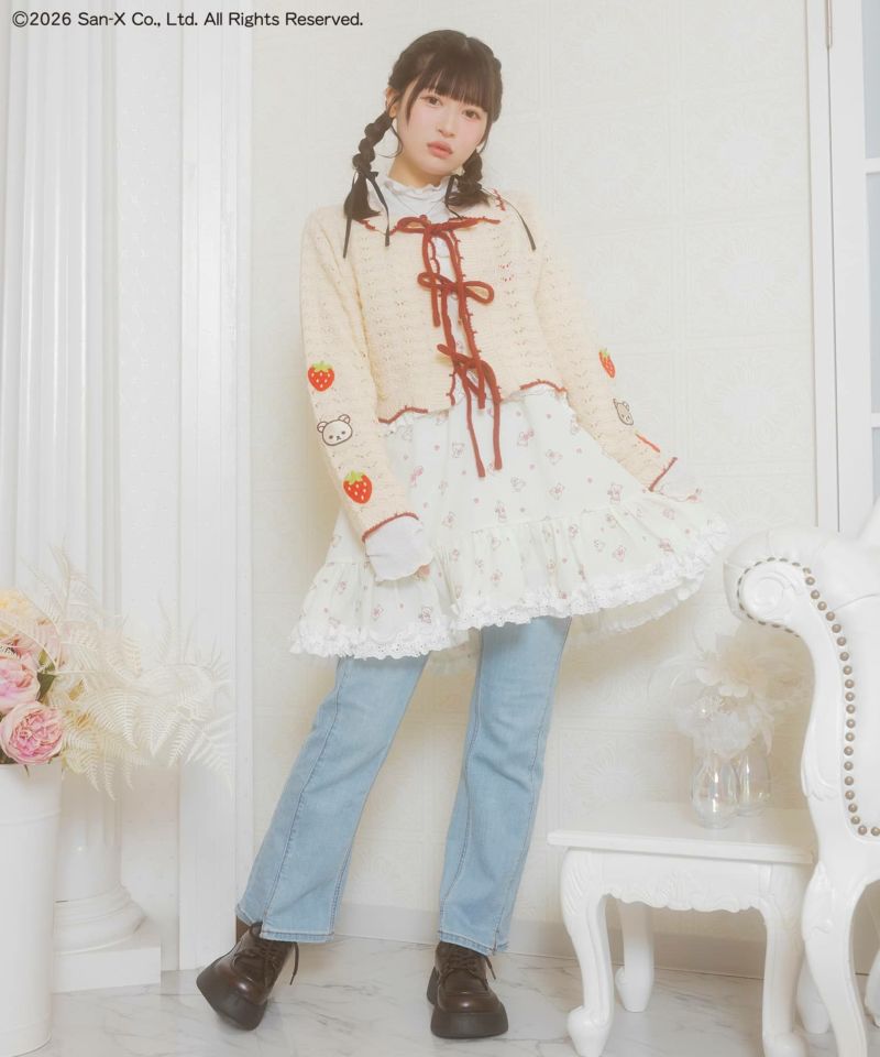 【予約】『コリラックマ×SPINNS』 いちご付き透かし編みカーディガン《4月中旬以降発送》