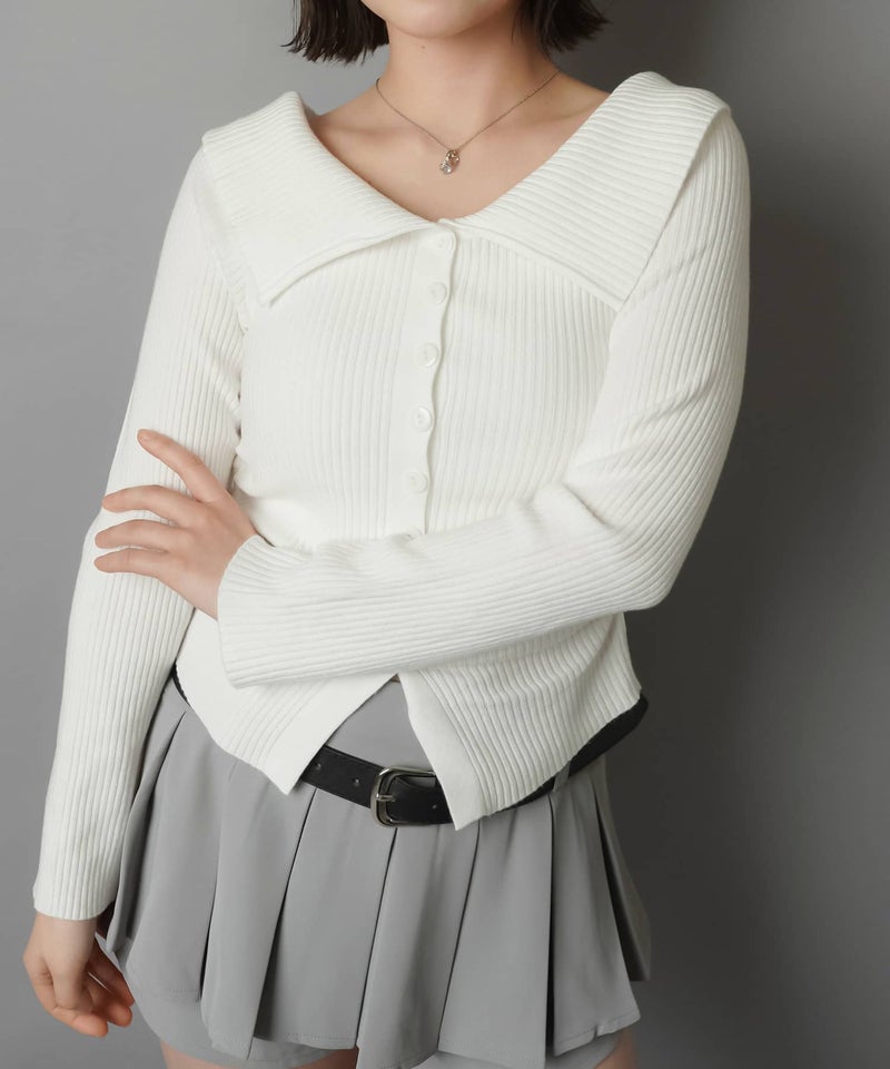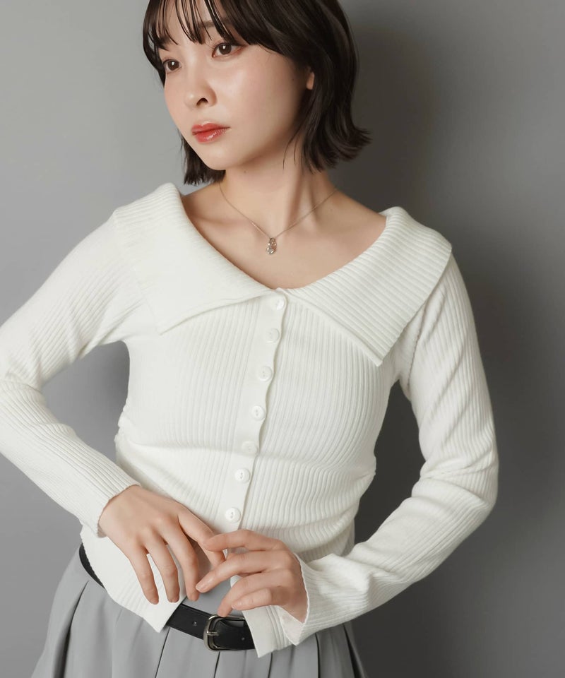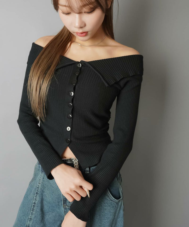 【上品な肌見せが叶う“オフショルデザイン”がポイントの美人見えニット】