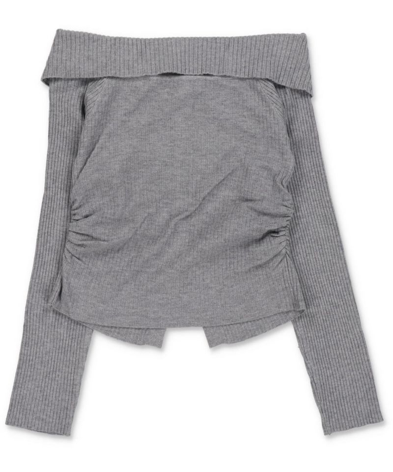 襟付きオフショルリブニット/ボタン/5色展開