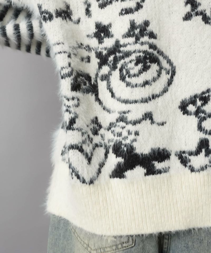 【41%OFF】シャギーニット/落書き風/袖ボーダー/#ドリームコア