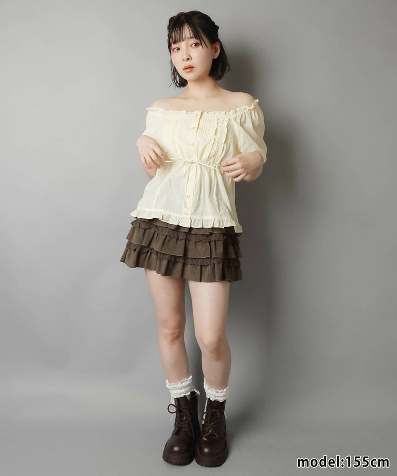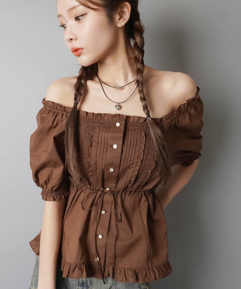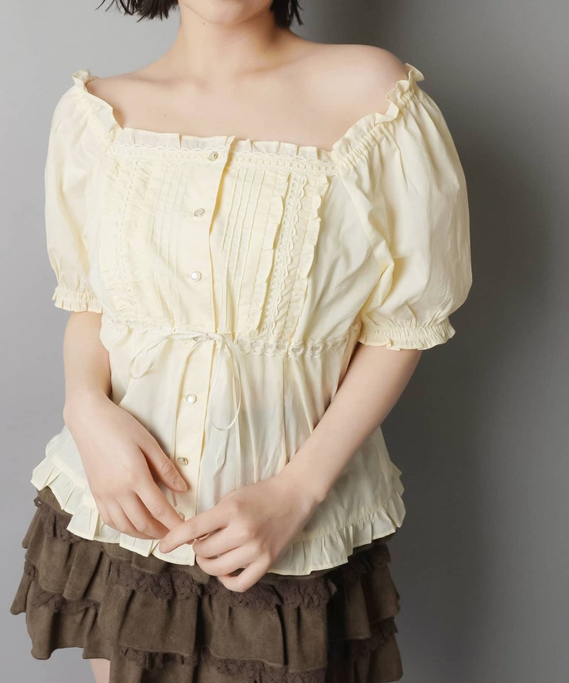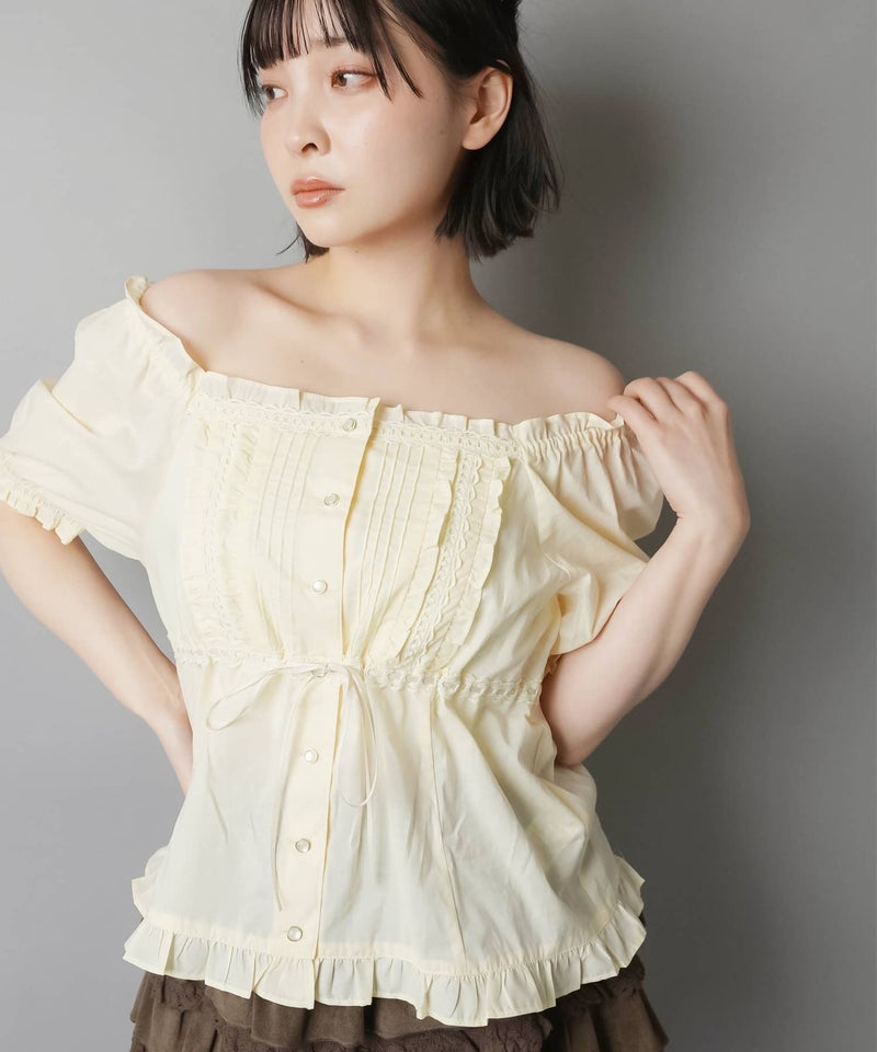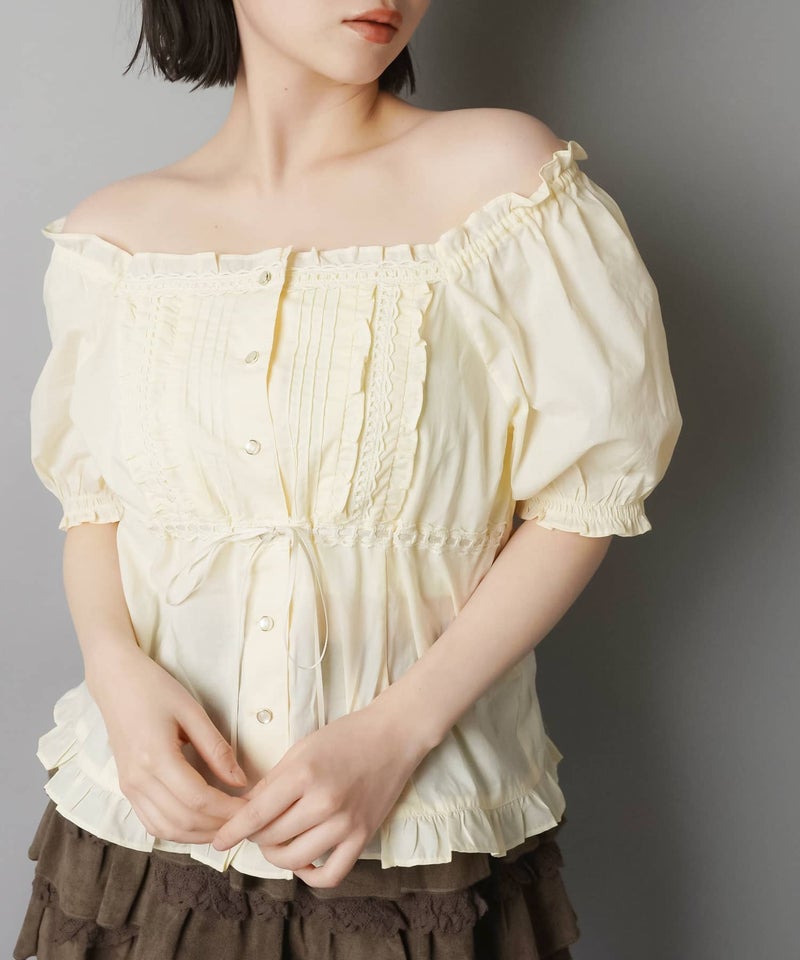 2WAYオフショル半袖ブラウス/レース