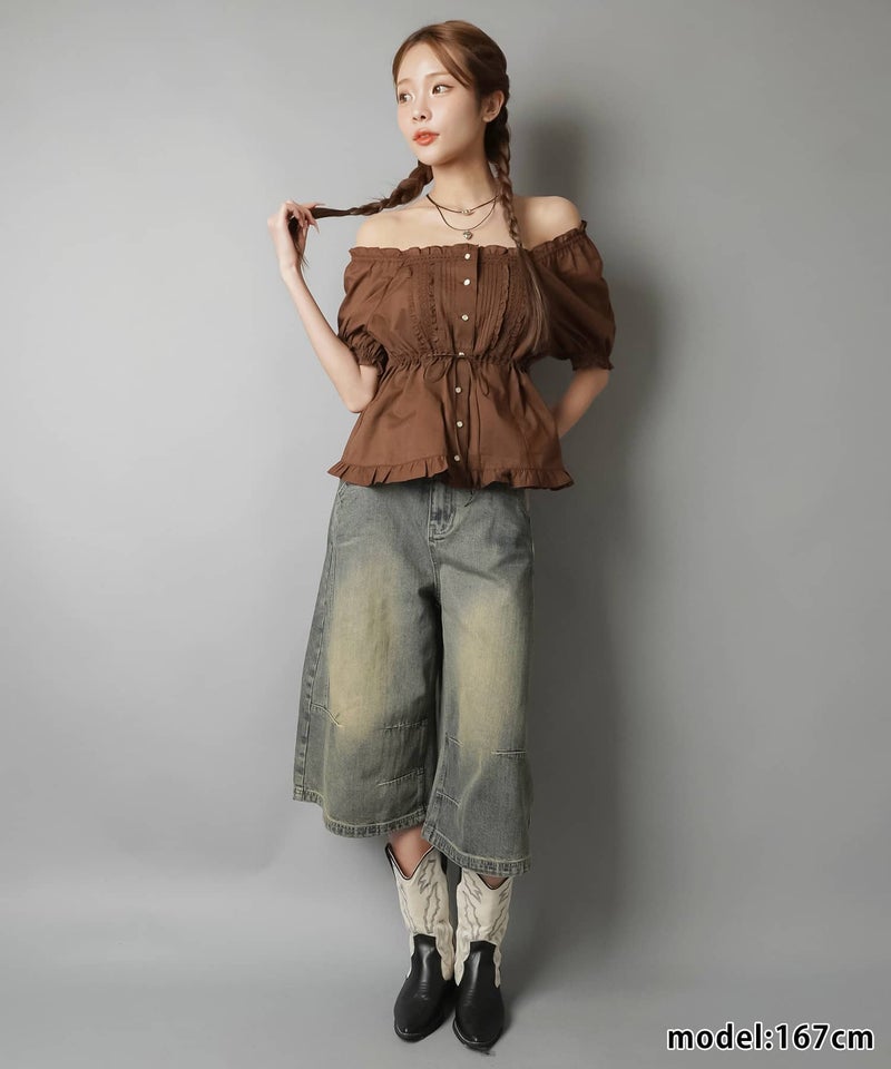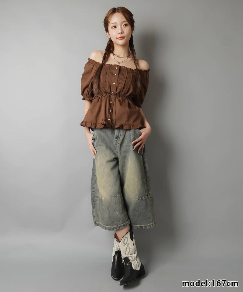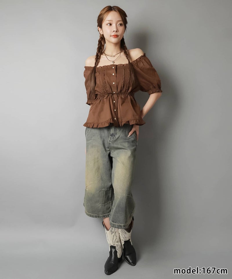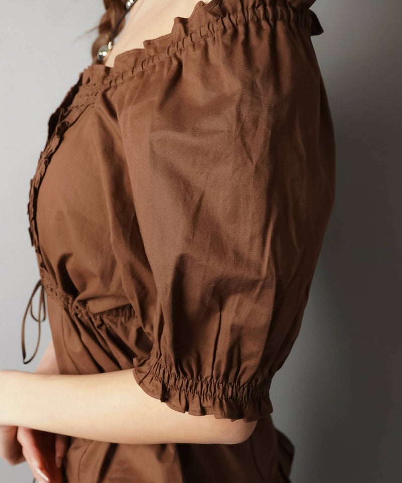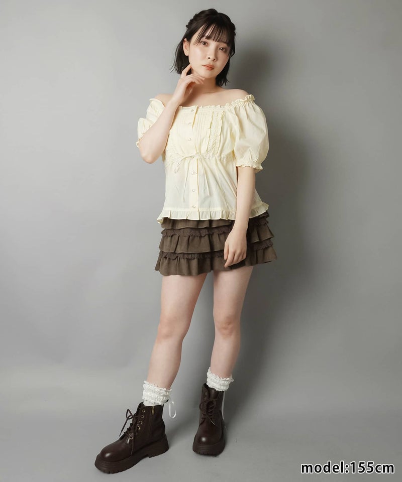 2WAYオフショル半袖ブラウス/レース