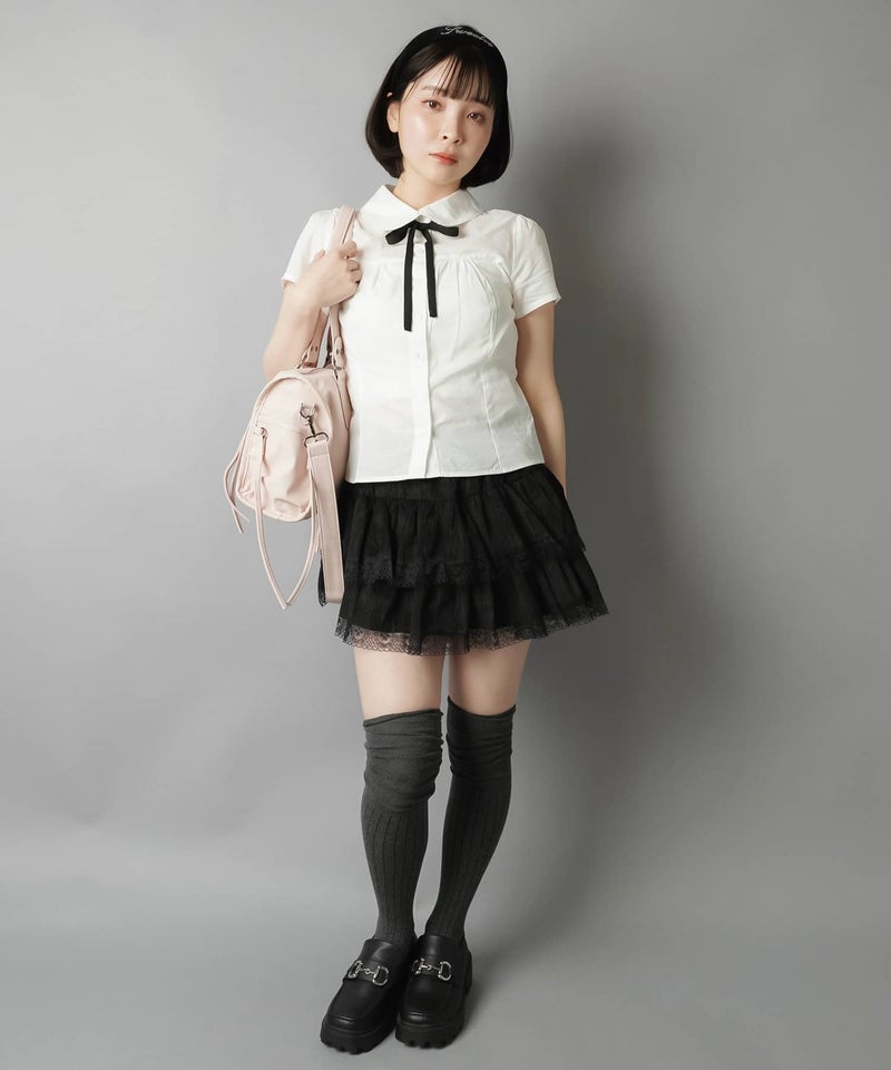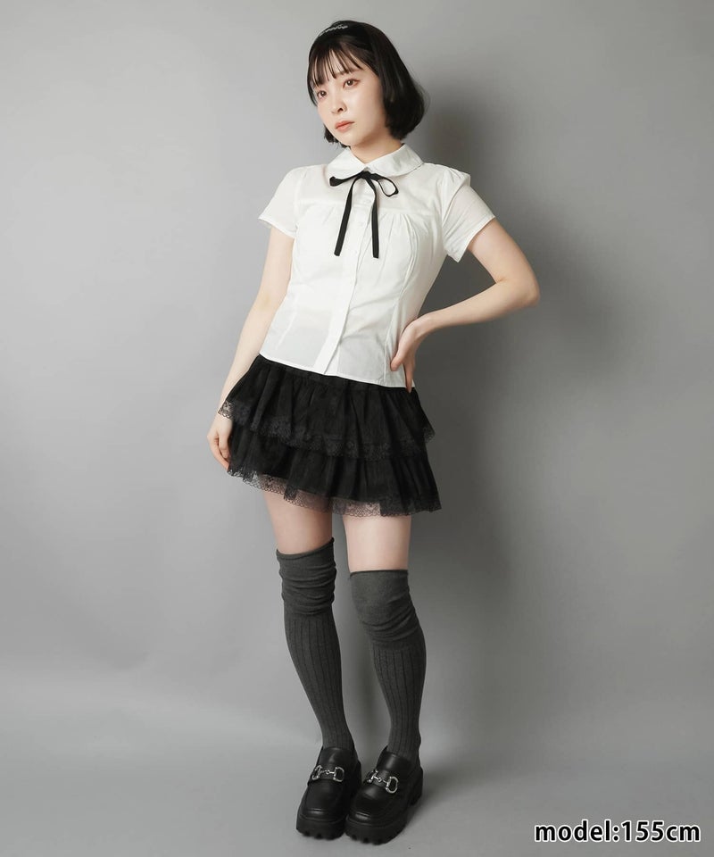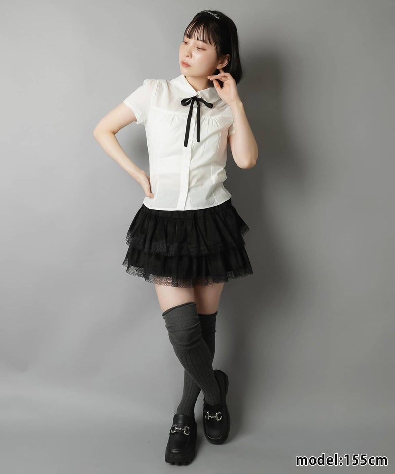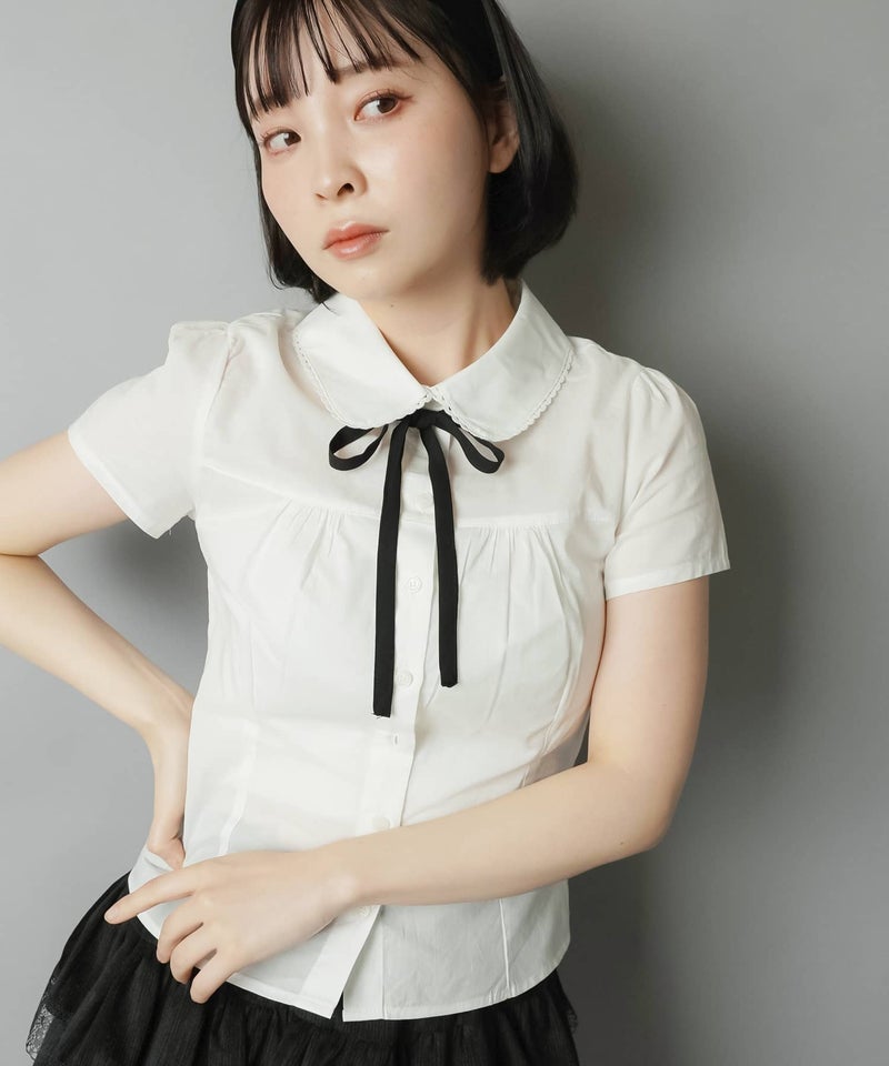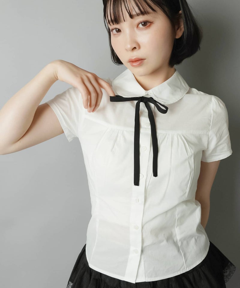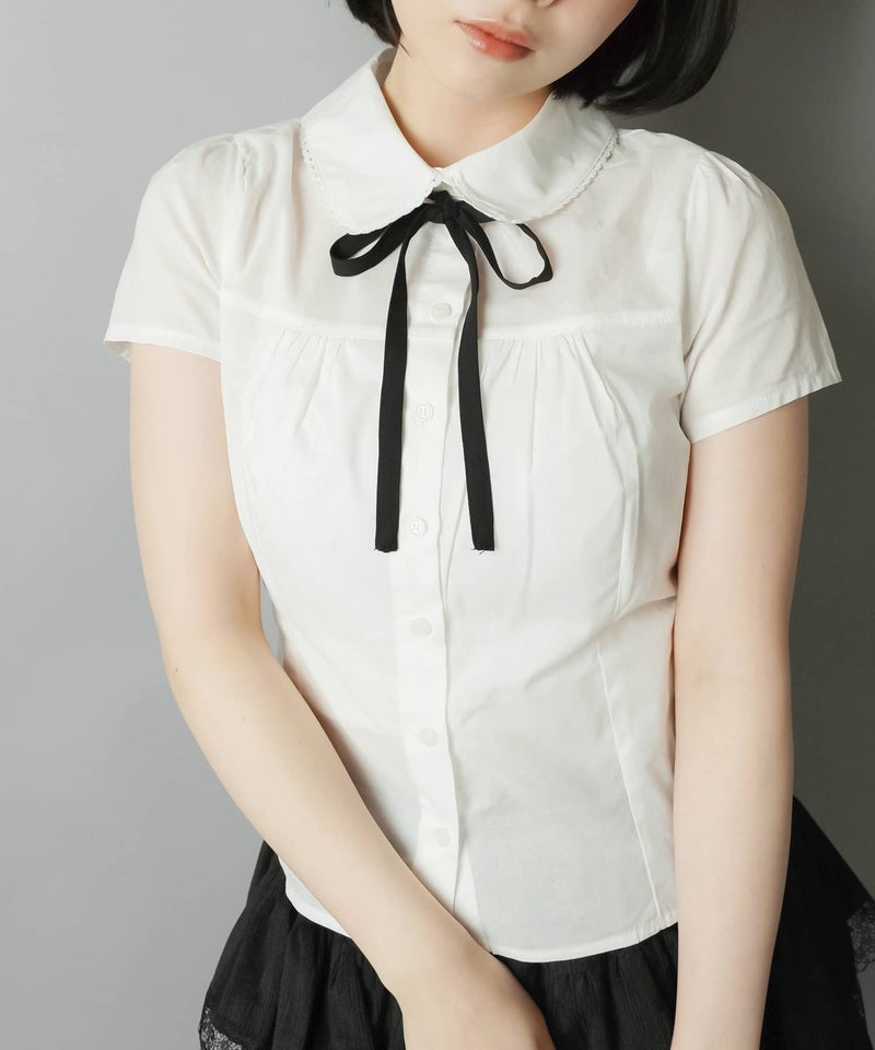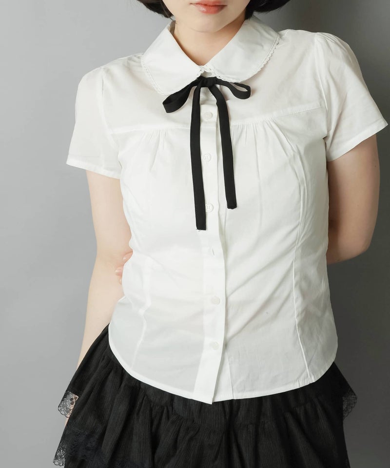襟付き半袖ブラウス/リボンセット