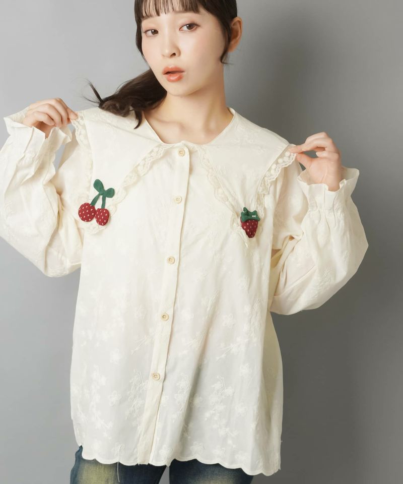 コットンレースブラウス/襟フルーツ/#NEO森ガール