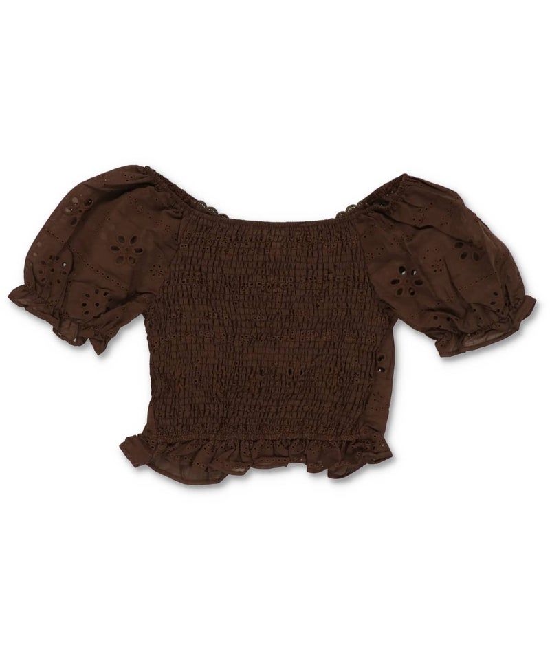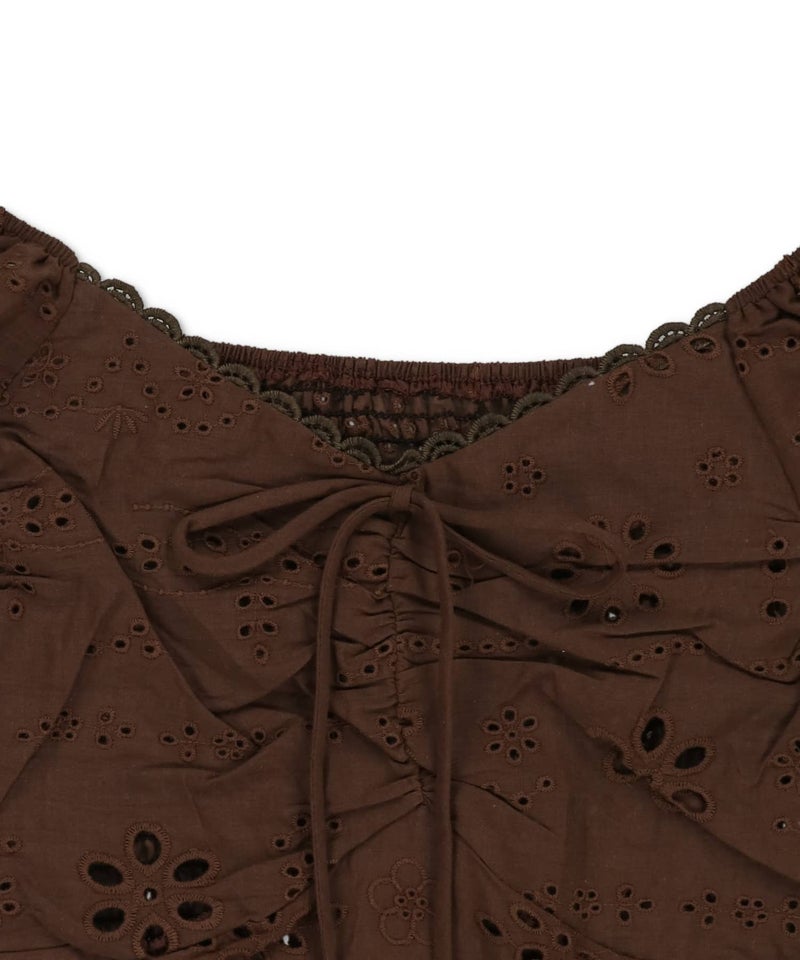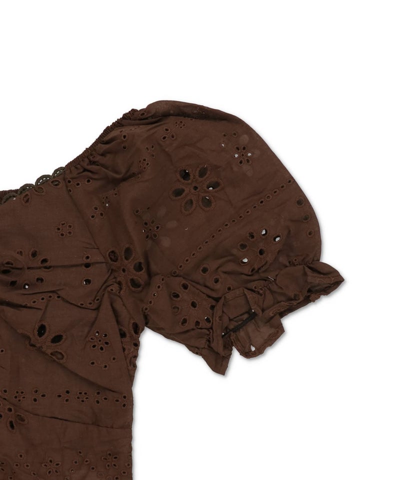 半袖ブラウス/コットンレースリボン