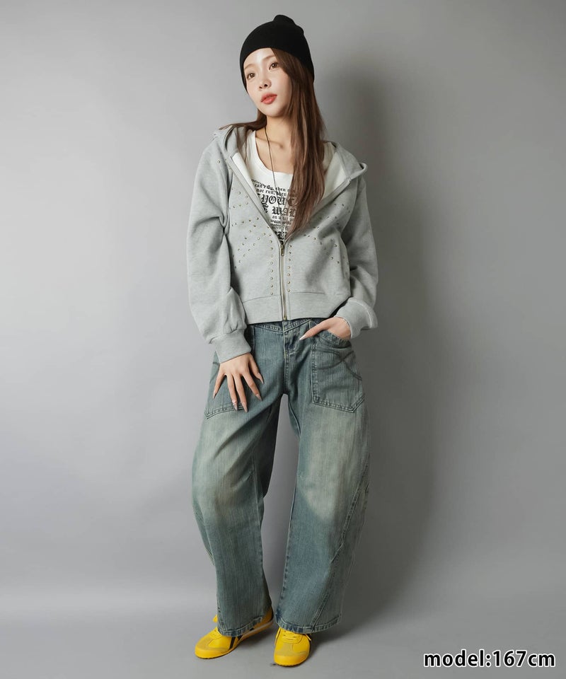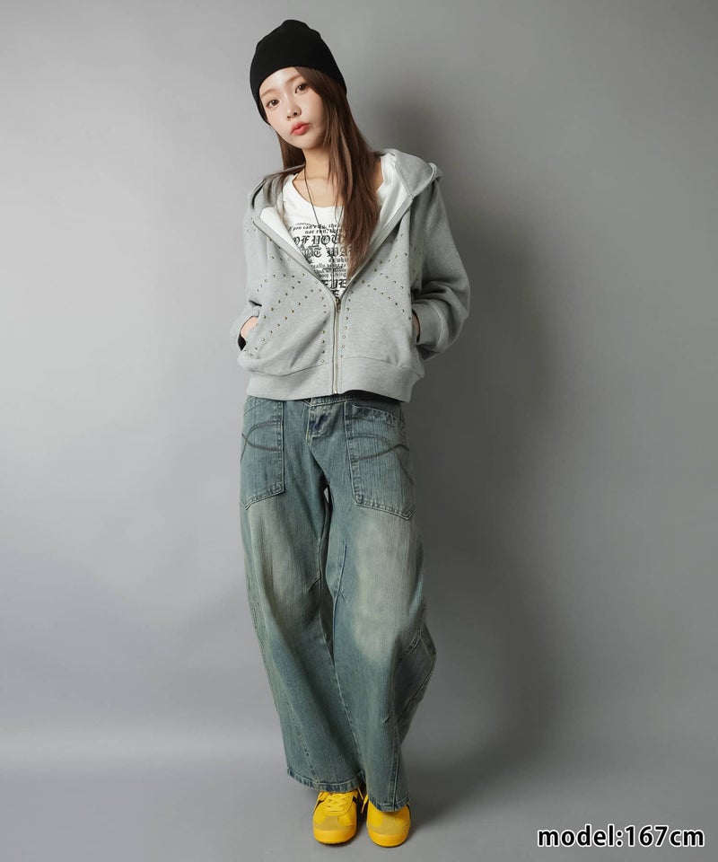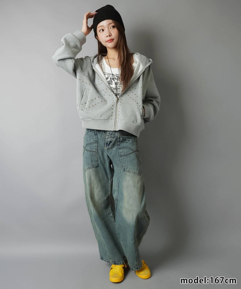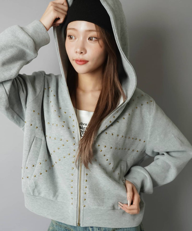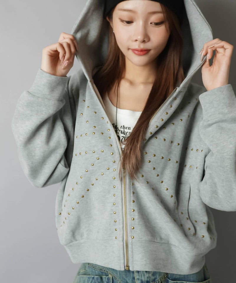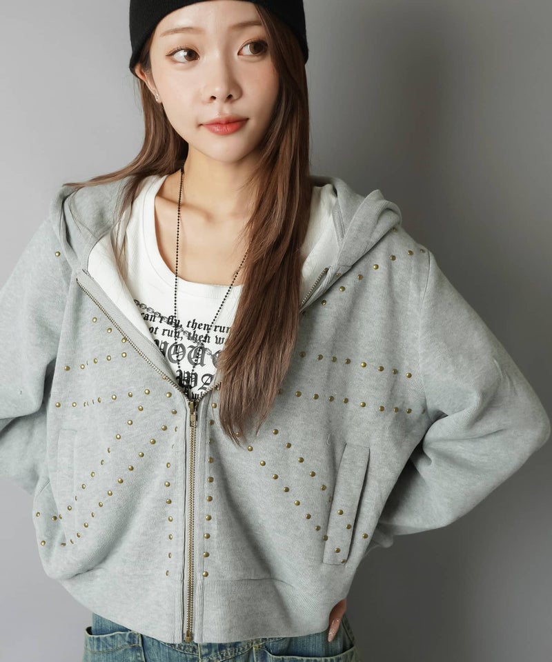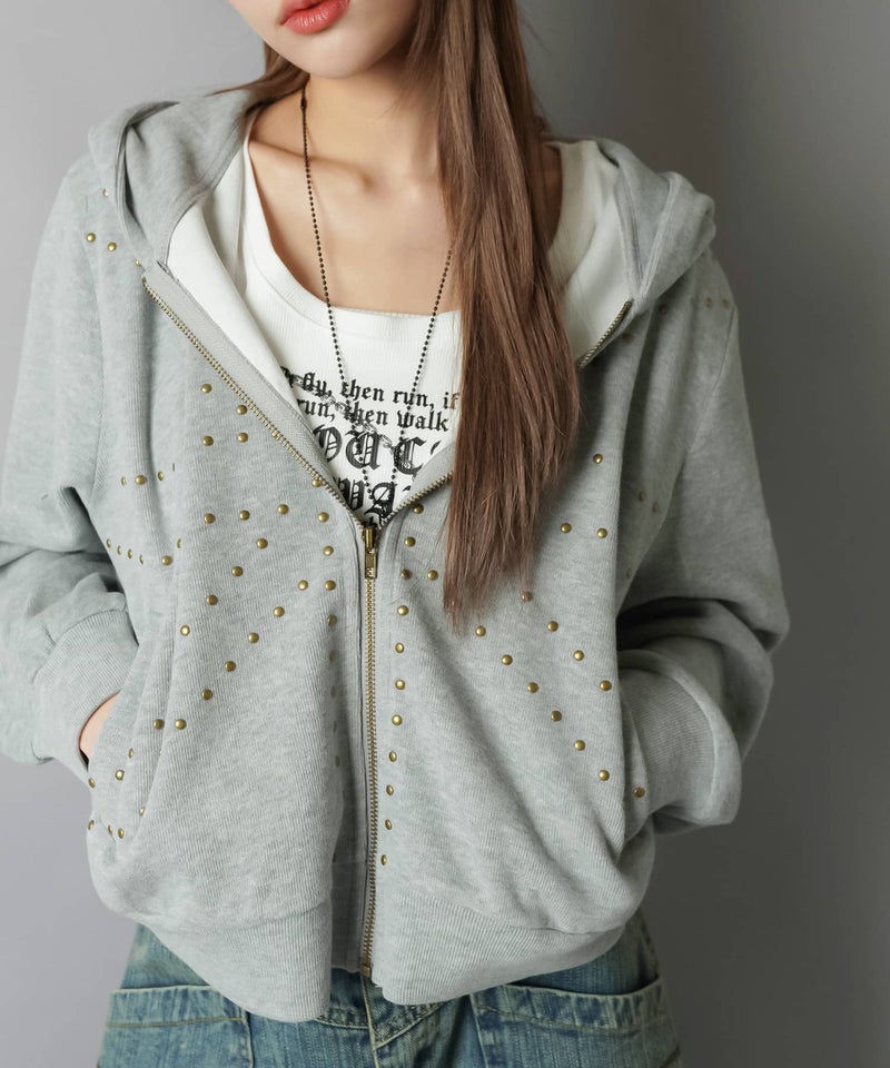 裏毛ジップパーカー/ユニオンジャック風スタッズ