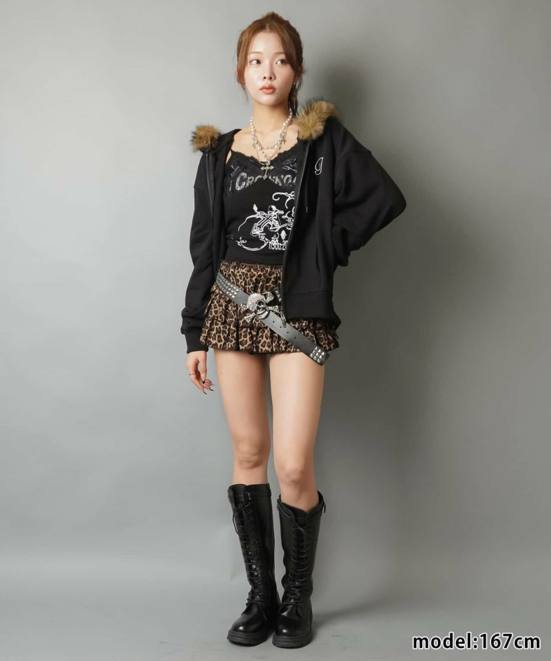 1:フードのフェイクファーがミックスでギャル感UP