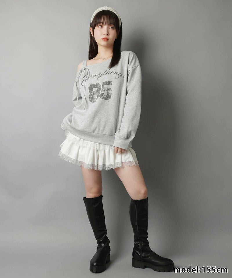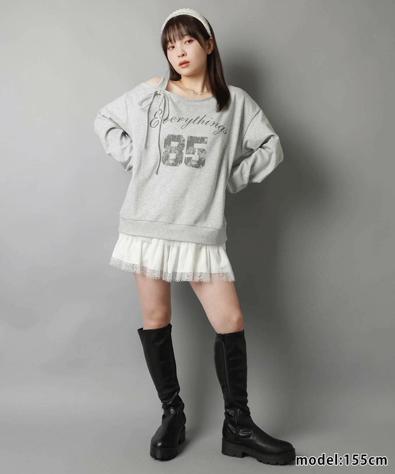 【ワンショルで女っぽさをプラス♡ ナンバリングロゴが可愛いスウェット】
