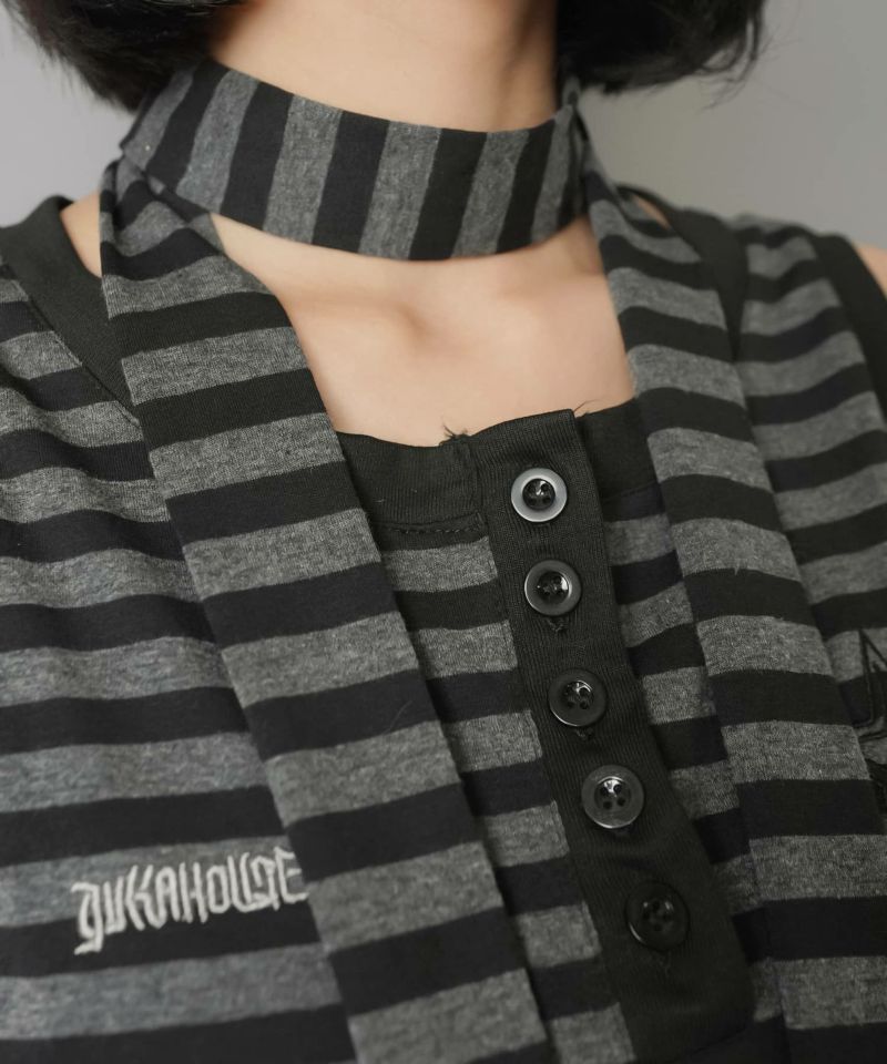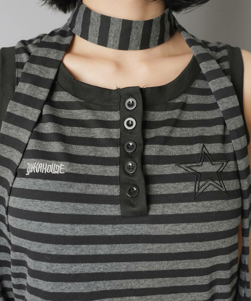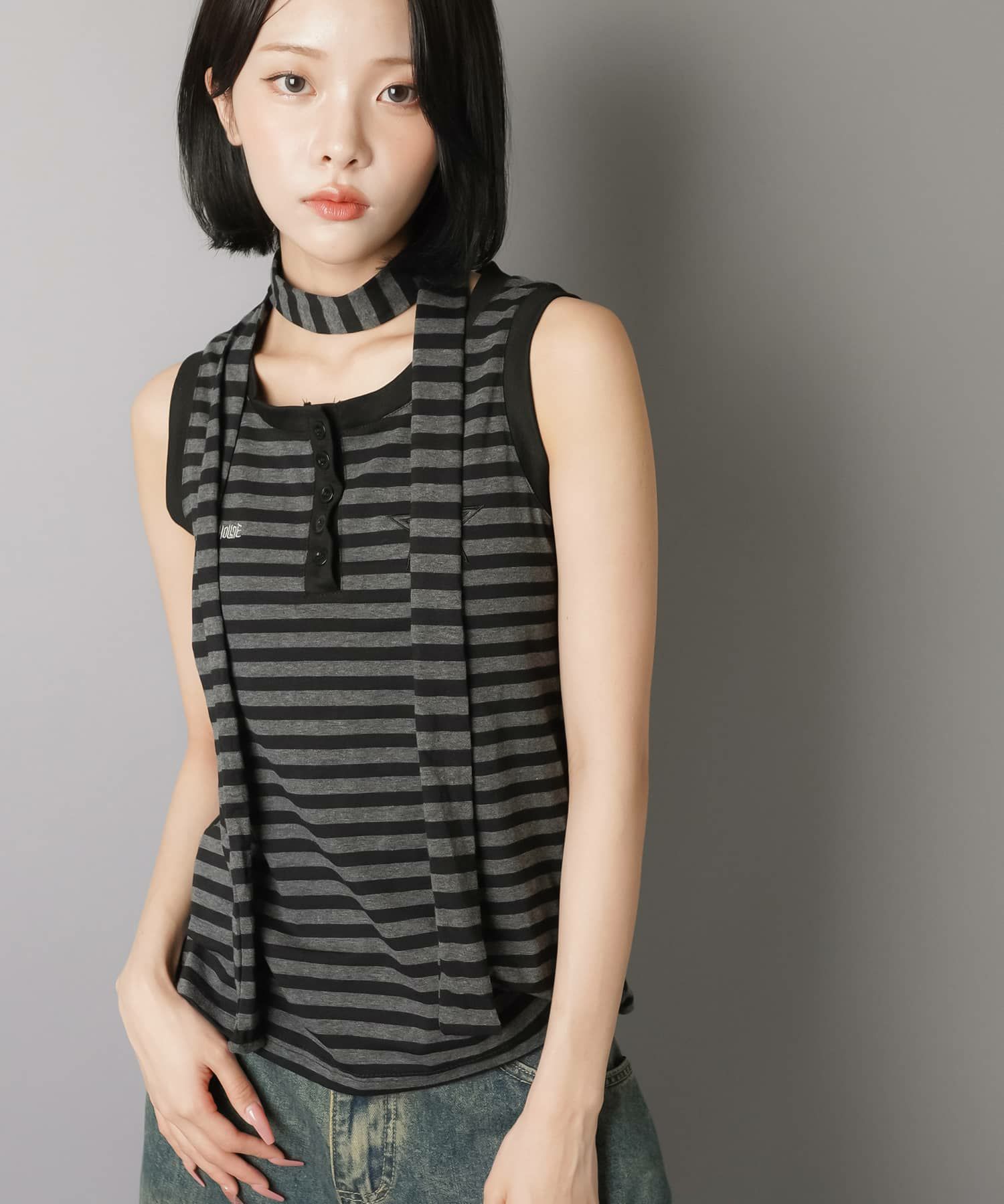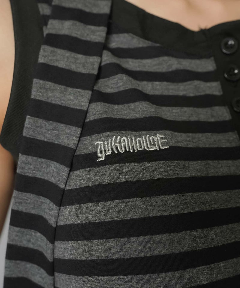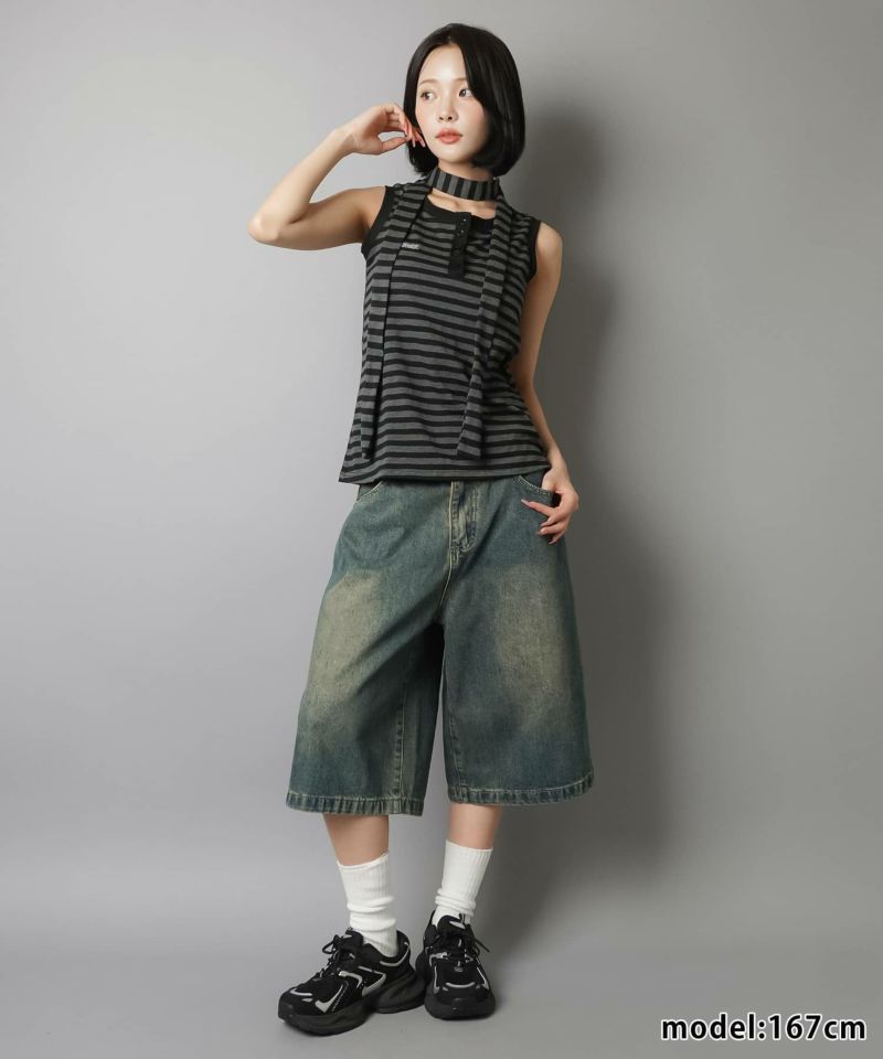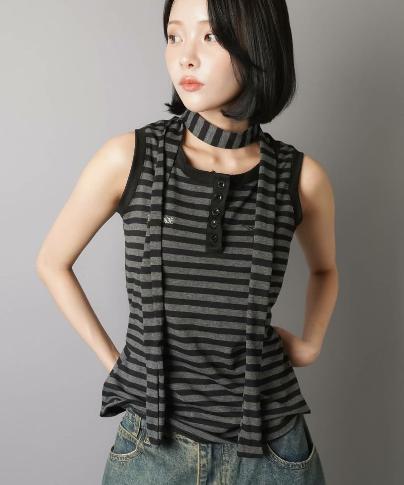 【韓国スタイルを叶えるタイ付きボーダータンクトップの2セットアイテム】