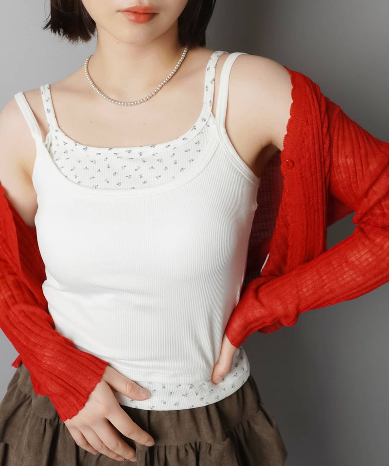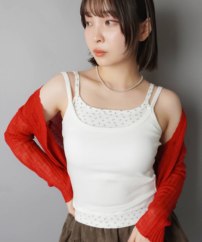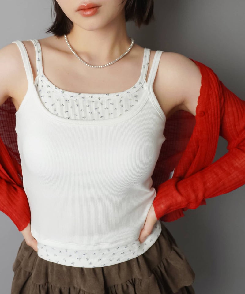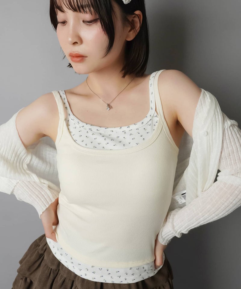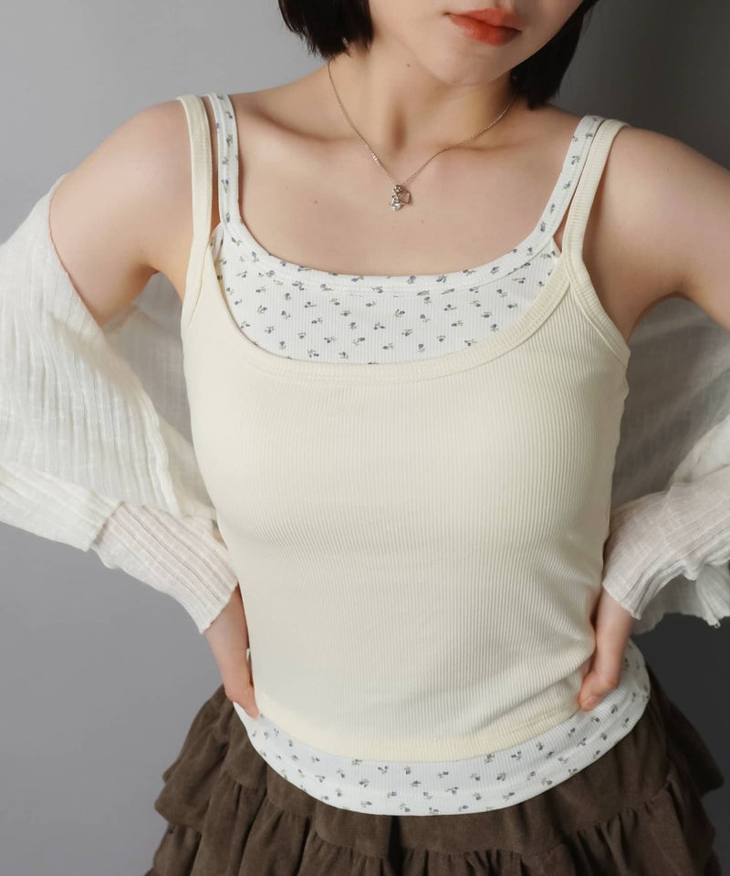 カップ付きレイヤード風キャミソール/小花柄