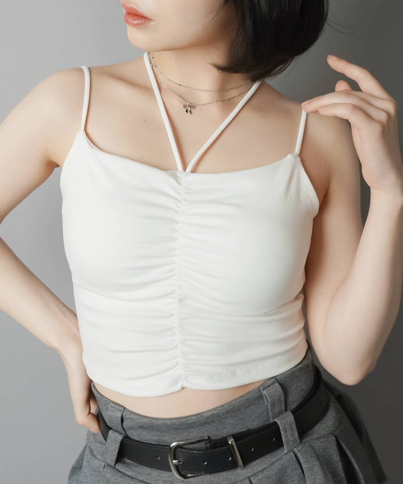 カップ付きホルターネックキャミソール/シャーリング