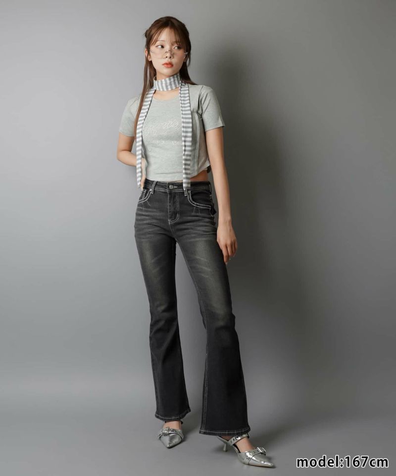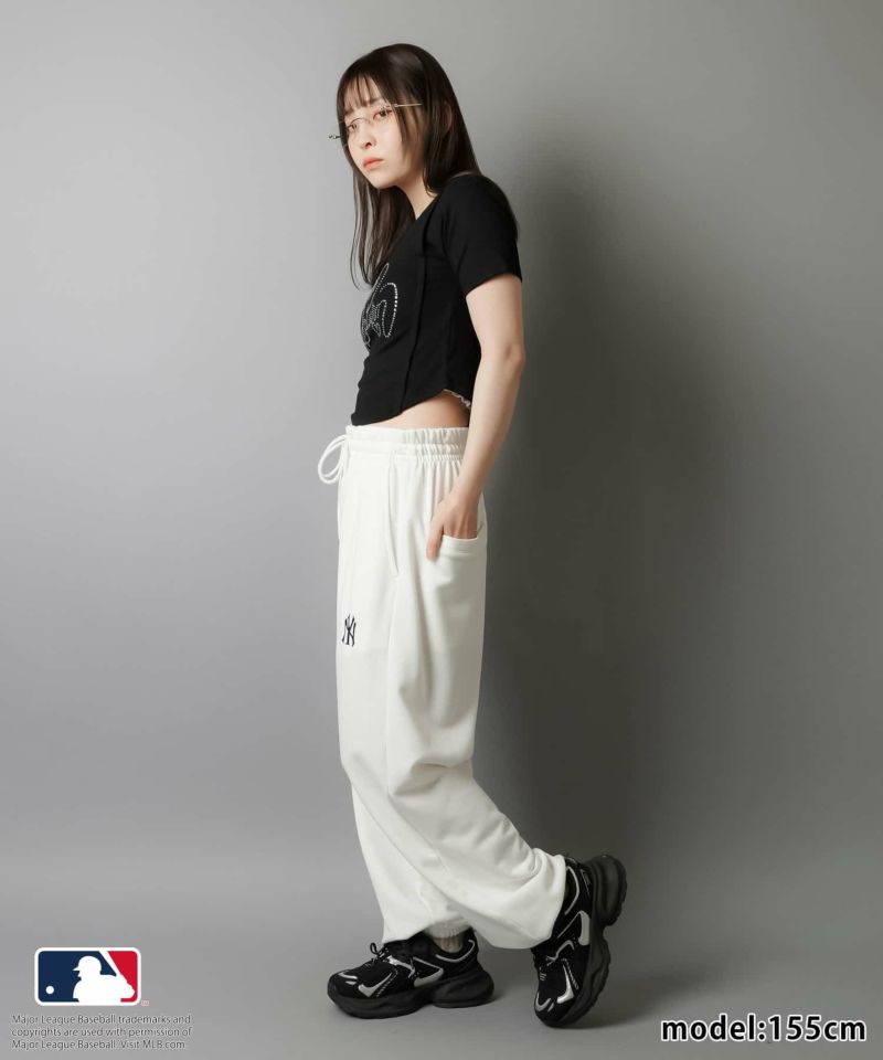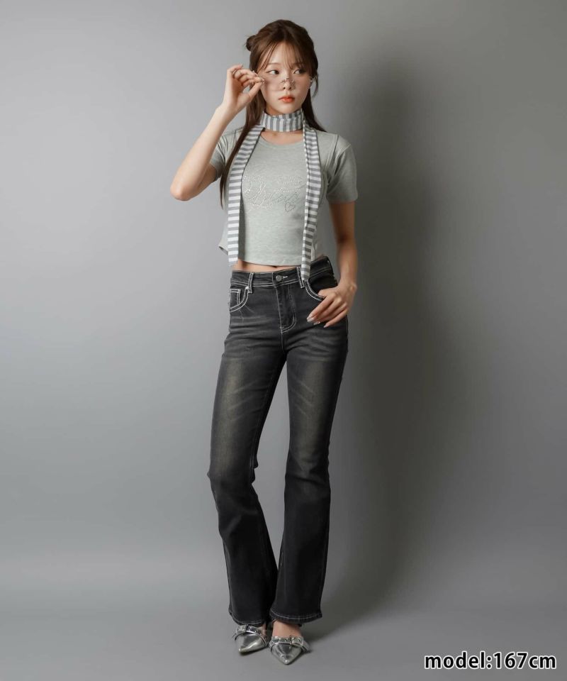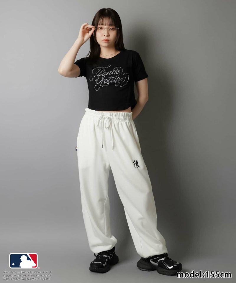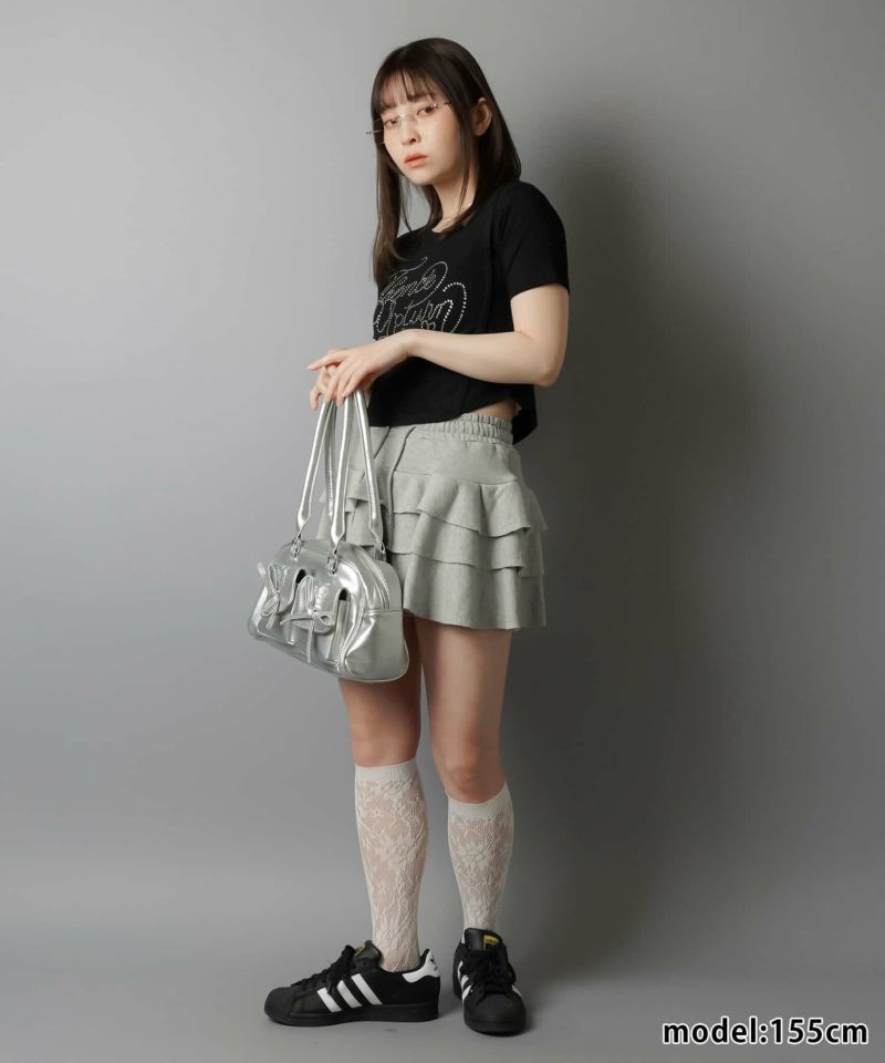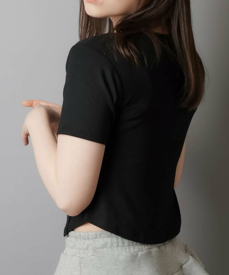 【ラインストーンロゴが目を惹くショート丈/クロップド丈ミニT】